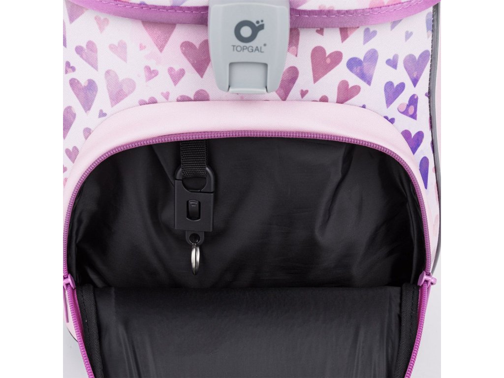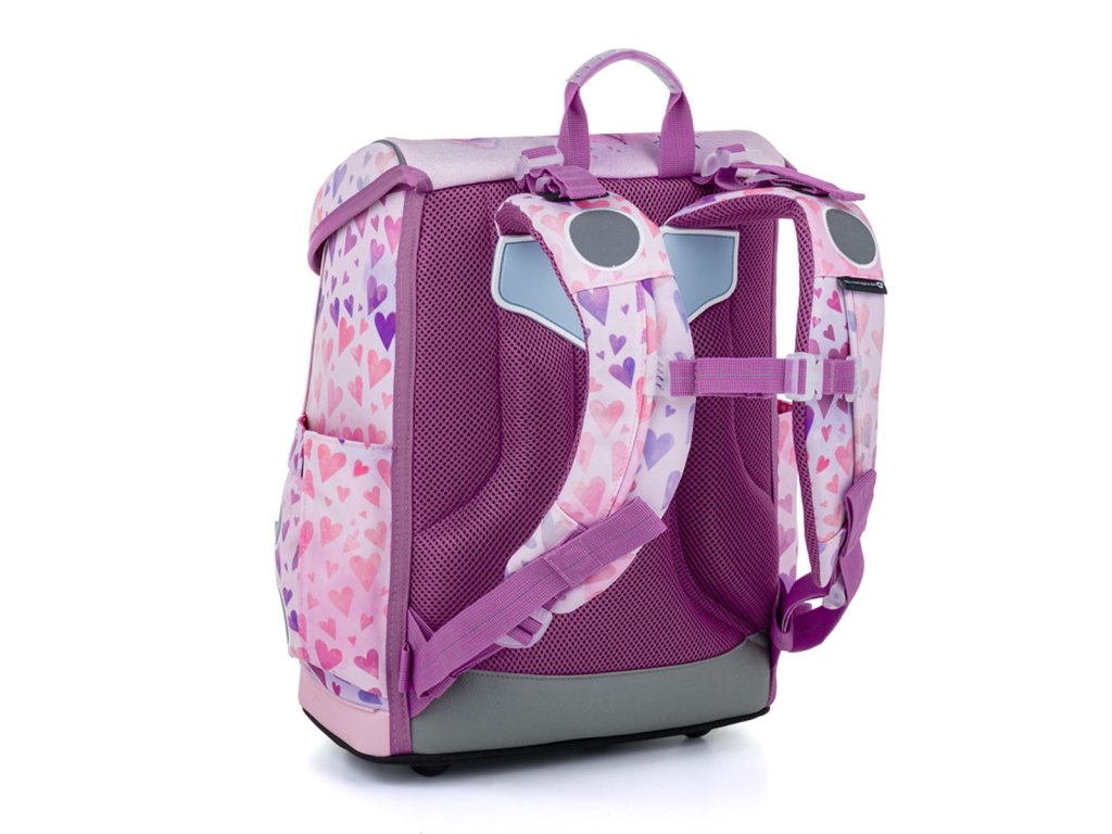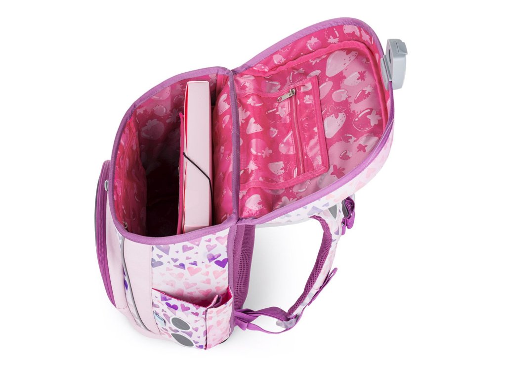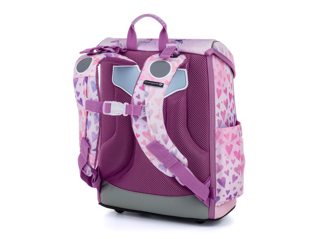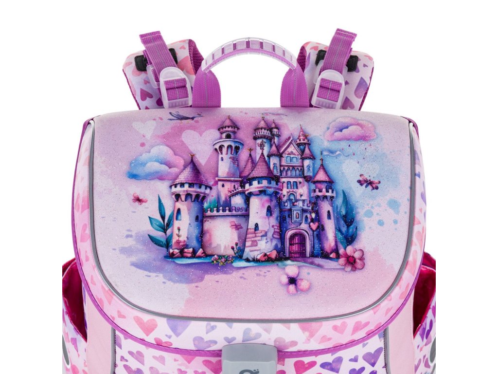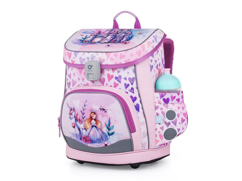 Rozprávkový ružovo-fialový motív s princeznou, jednorožcom, jemnými srdiečkami a trblietavými detailmi dodáva aktovke čarovný vzhľad. Vaša malá školáčka si ju zamiluje na prvý pohľad.
