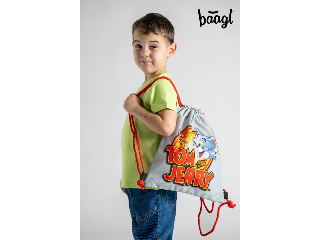 Menšie vrecko na obuv alebo potreby na cvičenie pre predškolákov s Tomom & Jerrym. Je vyrobené z pevného vodovzdorného materiálu s hrubými šnúrami na pohodlné nosenie na chrbte.