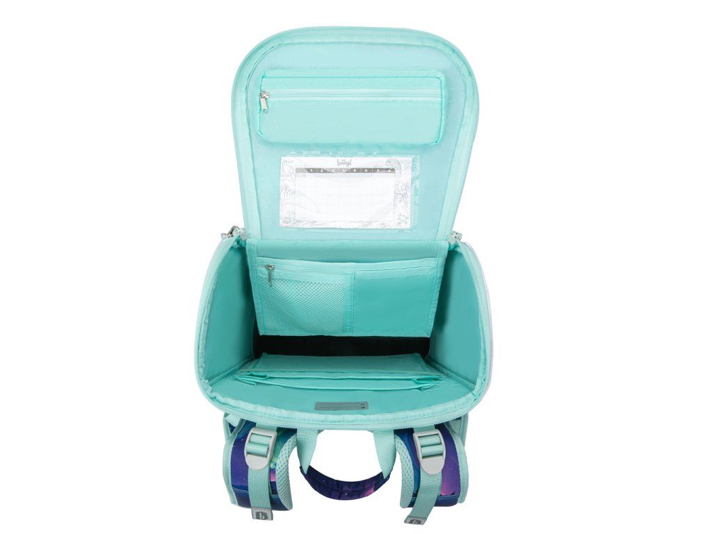• Jedinečný systém vymeniteľných odznakov umožňuje prispôsobiť vzhľad aktovky podľa nálady a záujmov dieťaťa.