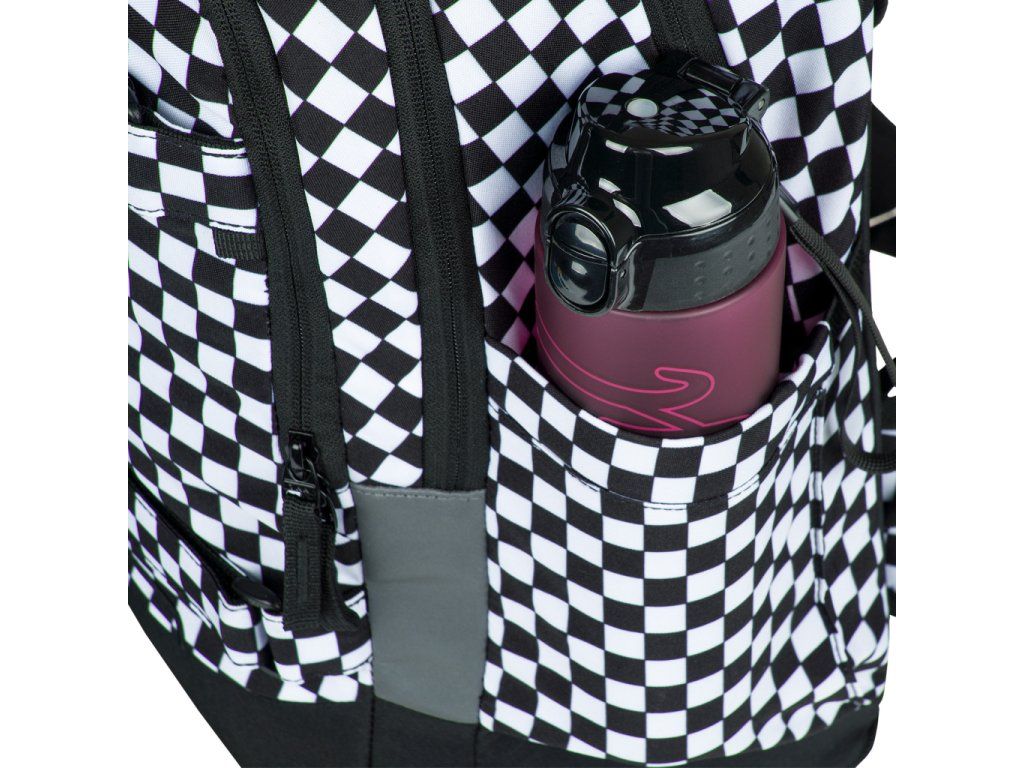 • Bočné vrecká, ideálne napríklad na tritanové fľaše BAAGL, sú vyrobené z pevného materiálu v súlade s dizajnom batohu.
