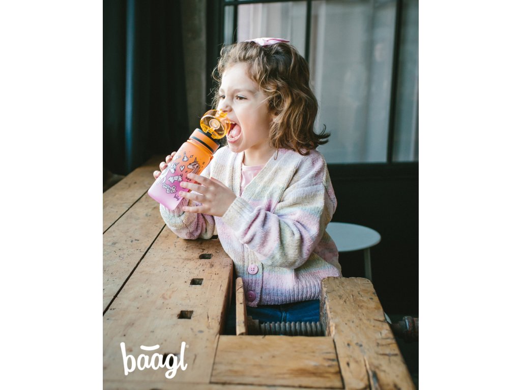 V školskej výbave nesmie chýbať poriadna fľaša na nápoje – a fľaša od BAAGLa je vhodná ako do školy, tak aj na výlety alebo na športový krúžok.Uzamykateľné viečko neprepustí ani kvapku nápoja a zabezpečuje jednoduchú a intuitívnu manipuláciu. Súčasťou fľaše je sitko, vďaka ktorému môžete fľašu použiť i na limonády s ovocím alebo čaj (materiál je vhodný aj na horúce nápoje). K fľaši je pripevnené pútko, ktoré umožňuje pohodlné nosenie v ruke.