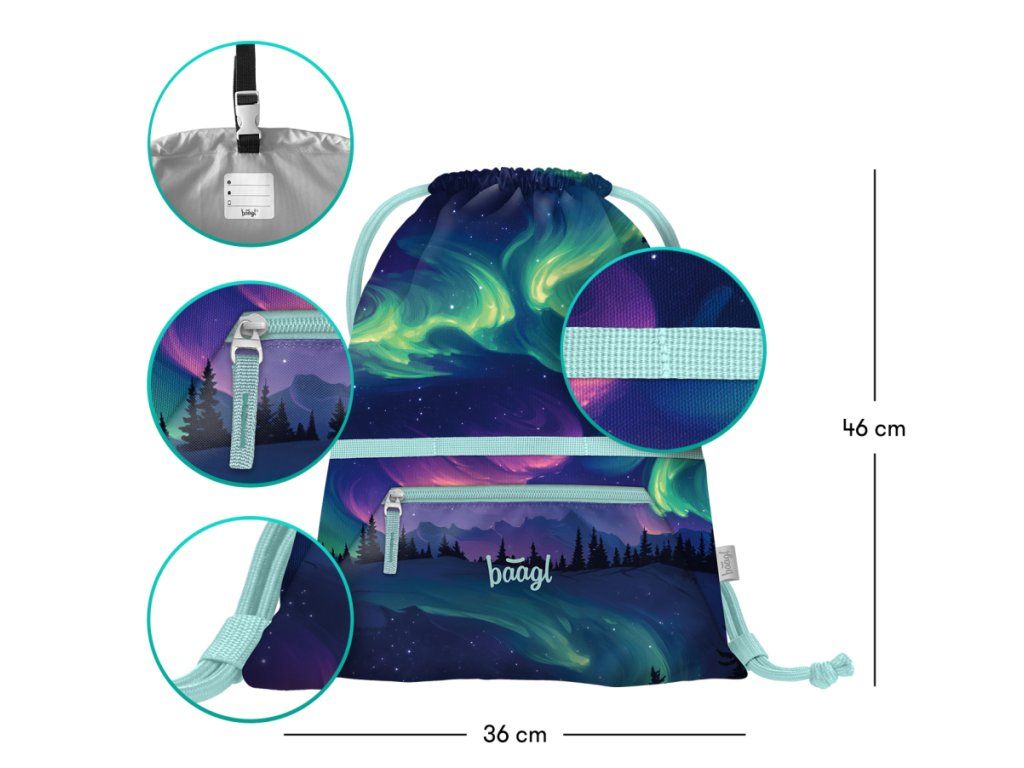 • Praktické vrecko s kapsičkou na zips je vhodné nielen na prezúvky do školy, ale aj na cestovanie, do mesta, na šport či iné voľnočasové aktivity.• Je vyrobené z pevného, umývateľného materiálu a vybavená pevnými šnúrkami na pohodlné nosenie.