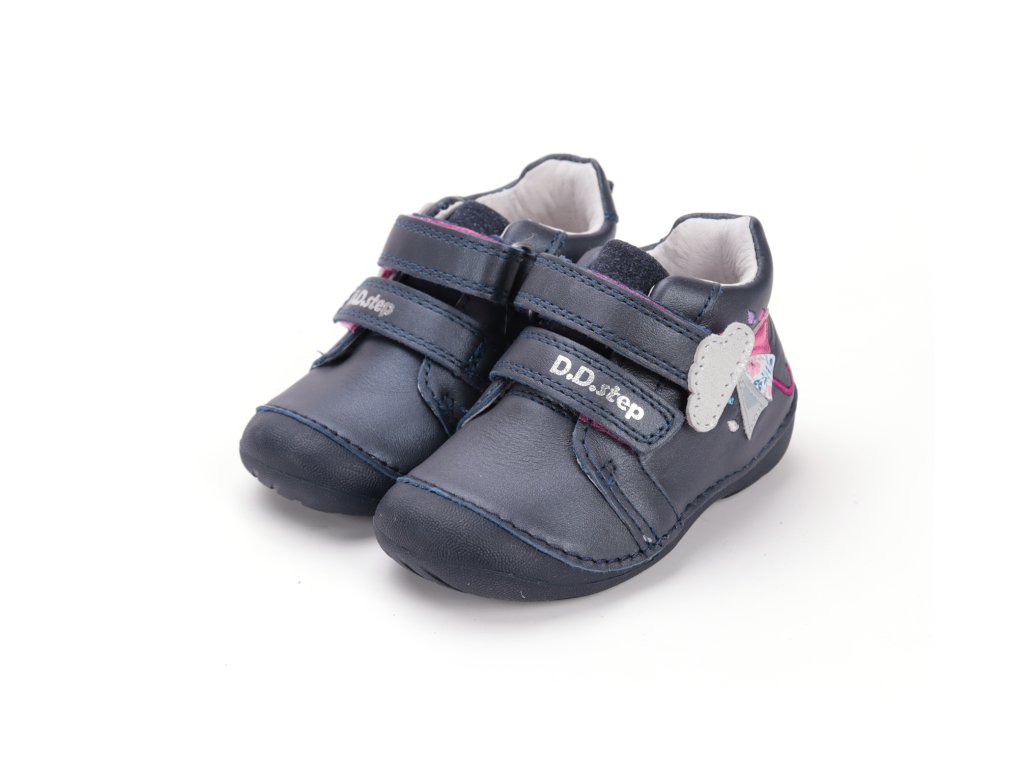Kvalitné detské celokožené topánky od obľúbeného výrobcu D.D.STEP. Nastaviteľné pomocou suchého zipsu. Výhodou je vyvýšená guma v prednej časti, ktorá zabraňuje okopávaniu topánok.