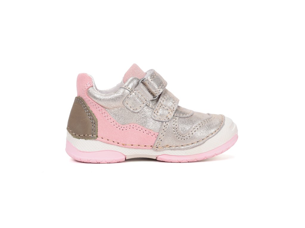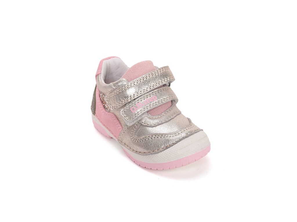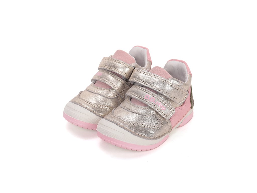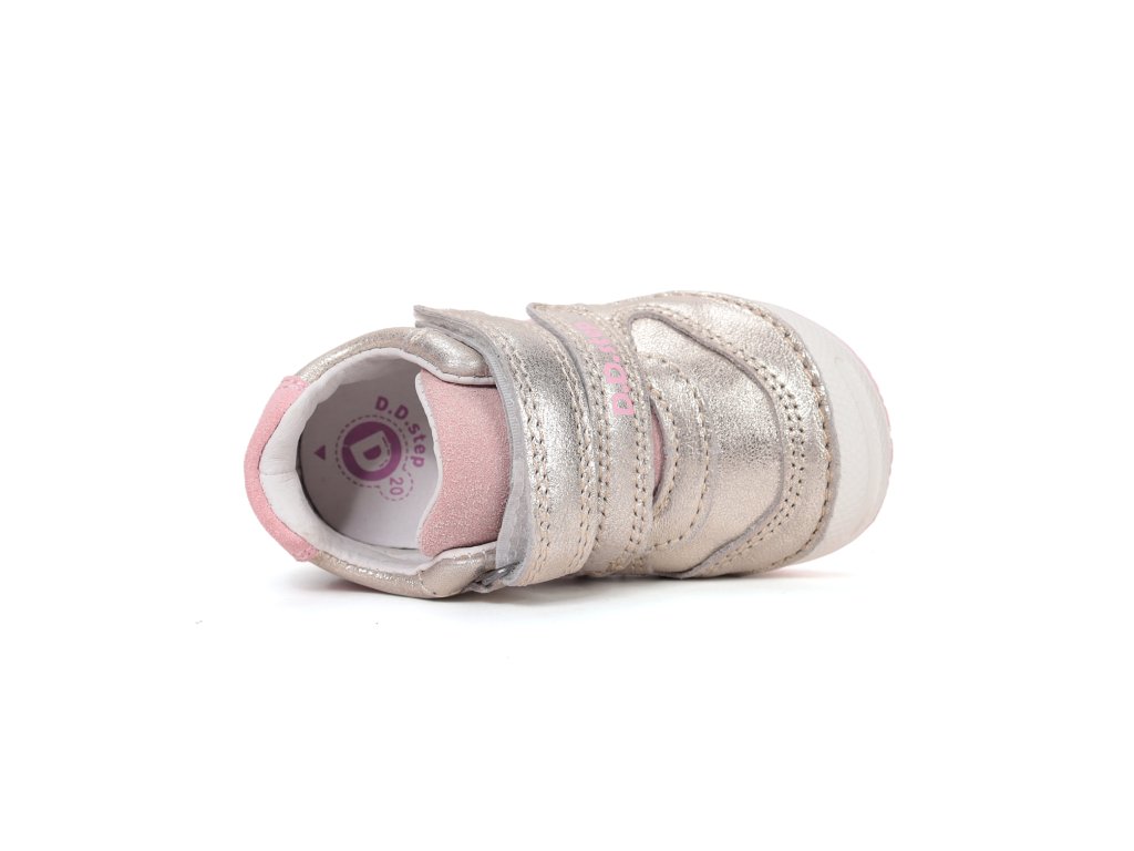 Kvalitné dievčenské prechodné topánky od renomovanej značky D.D.STEP v elegantnom zlatom prevedení s jemnými ružovými detailmi. Model 61324B z rady 038 je vyrobený z prémiovej prírodnej kože, ktorá zabezpečuje potrebnú priedušnosť a odolnosť. Topánky sú navrhnuté so zreteľom na správny vývoj detského chodidla, preto disponujú spevnenou pätou a anatomicky tvarovanou koženou stielkou. Flexibilná gumová podrážka s vyvýšenou špičkou chráni obuv pred okopaním a zabezpečuje bezpečný pohyb. Vďaka dvom suchým zipsom je obúvanie rýchle a topánka skvele sedí na nohe.