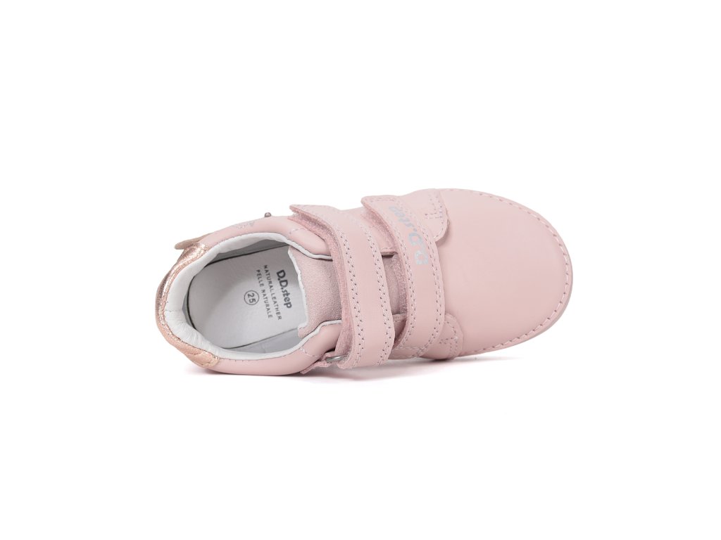 Dievčenské prechodné kožené topánky D.D.Step 050 Baby Pink sú ideálne na jar a jeseň pre každodenné nosenie. Majú praktické zapínanie na suchý zips, ktoré umožňuje jednoduché obúvanie a dobré prispôsobenie topánky nožičke.