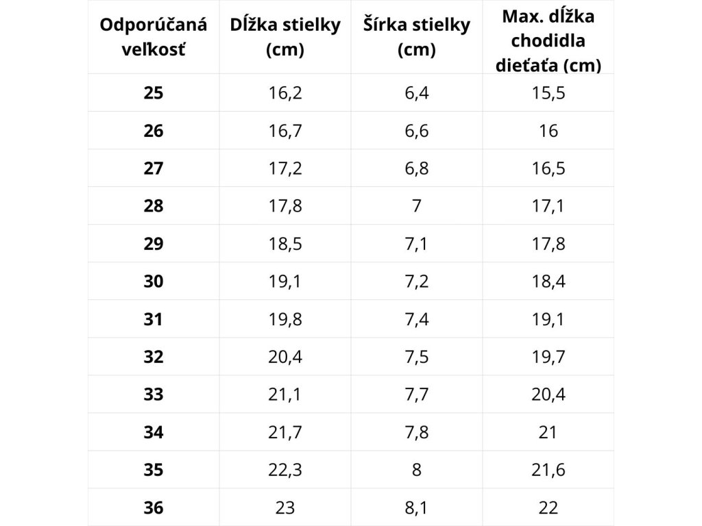 3. Porovnaj s veľkostnou tabuľkou pre podrážku 063 Barefoot.