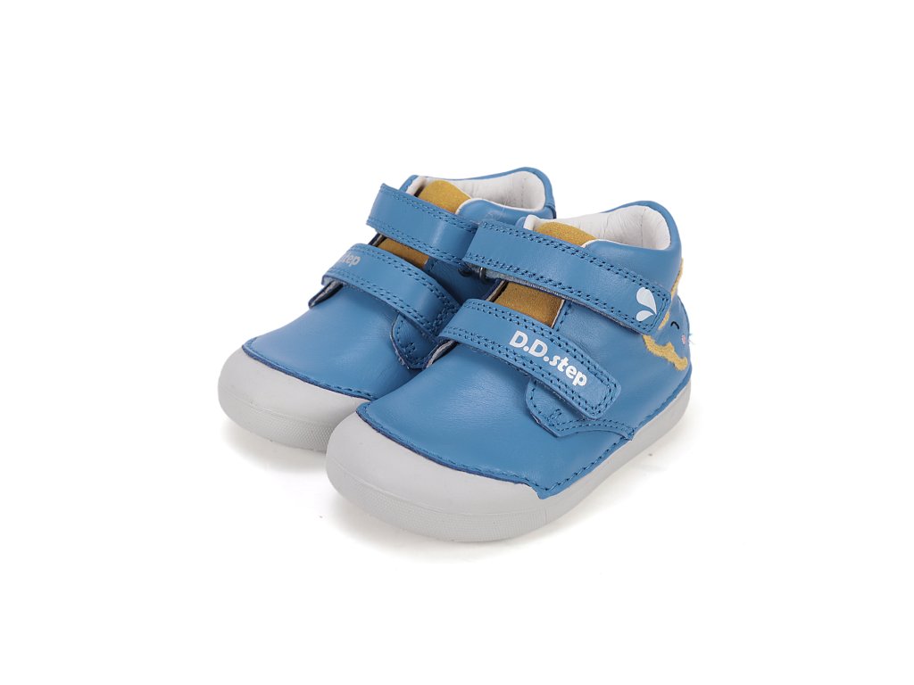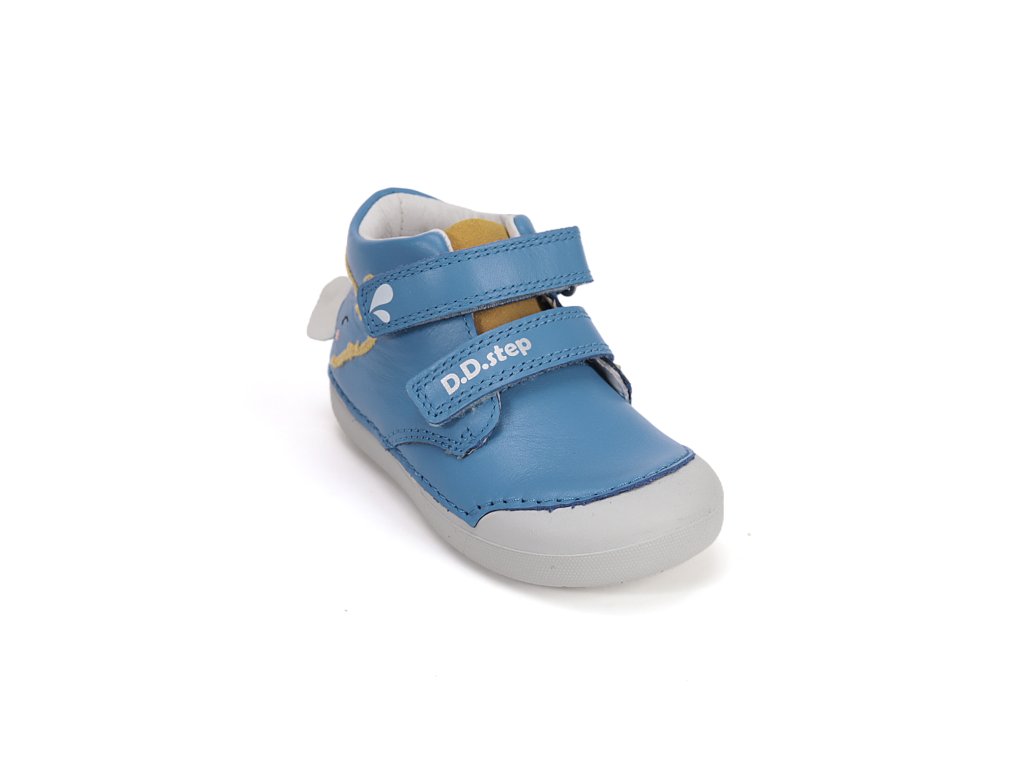 Kvalitné detské celokožené topánky od obľúbeného výrobcu D.D.STEP. Nastaviteľné pomocou suchého zipsu. Výhodou je vyvýšená guma v prednej časti, ktorá zabraňuje okopávaniu topánok.