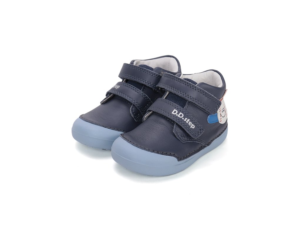 Chlapčenské kožené prechodné topánky D.D.Step 066 Marine Grey sú vhodné na každodenné nosenie počas jari a jesene. Majú praktické zapínanie na suchý zips, ktoré uľahčuje obúvanie a zabezpečuje dobré prispôsobenie topánky nožičke.
