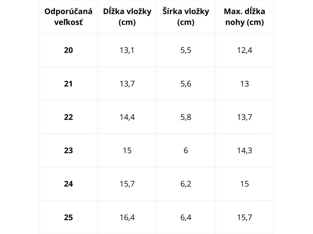 - Porovnaj s veľkostnou tabuľkou pre podrážku D.D.Step rada 066 / 070.