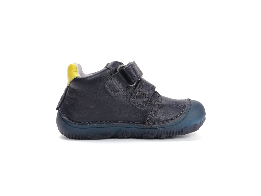 Chlapčenské kožené barefoot prechodné topánky D.D.Step 073 Royal Blue podporujú prirodzený pohyb detskej nohy vďaka tenkej a veľmi flexibilnej podrážke bez podpätku, ktorá umožňuje lepší kontakt so zemou a prirodzený krok.