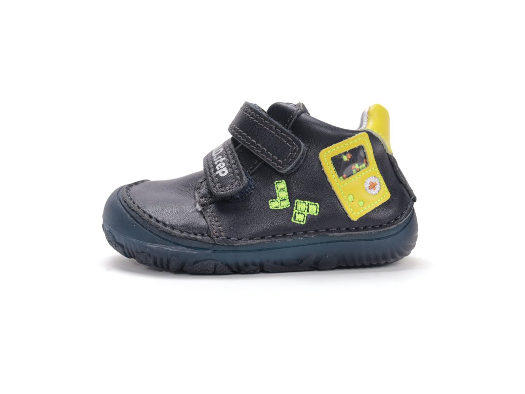 Štýlové a mimoriadne pohodlné celokožené topánky od značky D.D.Step v kráľovskej modrej farbe sú ideálnou voľbou pre malých hráčov. Vďaka hravému dizajnu s motívom hernej konzoly a farebných kociek si ich deti okamžite obľúbia. Modelová rada 073 patrí k obľúbenej barefoot sérii, ktorá rešpektuje prirodzený tvar detského chodidla. Topánky sú vyrobené z kvalitnej a mäkkej kože, ktorá zabezpečuje priedušnosť a komfort pri každom kroku. Majú nulový sklon medzi pätou a špičkou, čo podporuje správne držanie tela a zdravý vývoj detskej nožičky. Praktické zapínanie na dva suché zipsy uľahčuje obúvanie a umožňuje presné dotiahnutie okolo členka.
