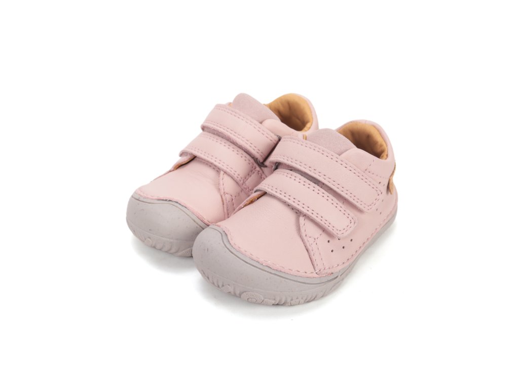 Dievčenské kožené barefoot prechodné topánky D.D.Step 073 Baby Pink podporujú prirodzený vývoj detského chodidla a voľný pohyb pri chôdzi. Tenká a flexibilná podrážka bez podpätku umožňuje lepší kontakt so zemou a prirodzený krok.