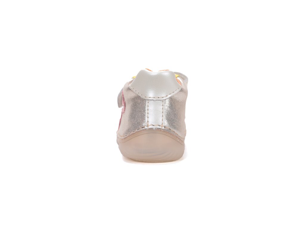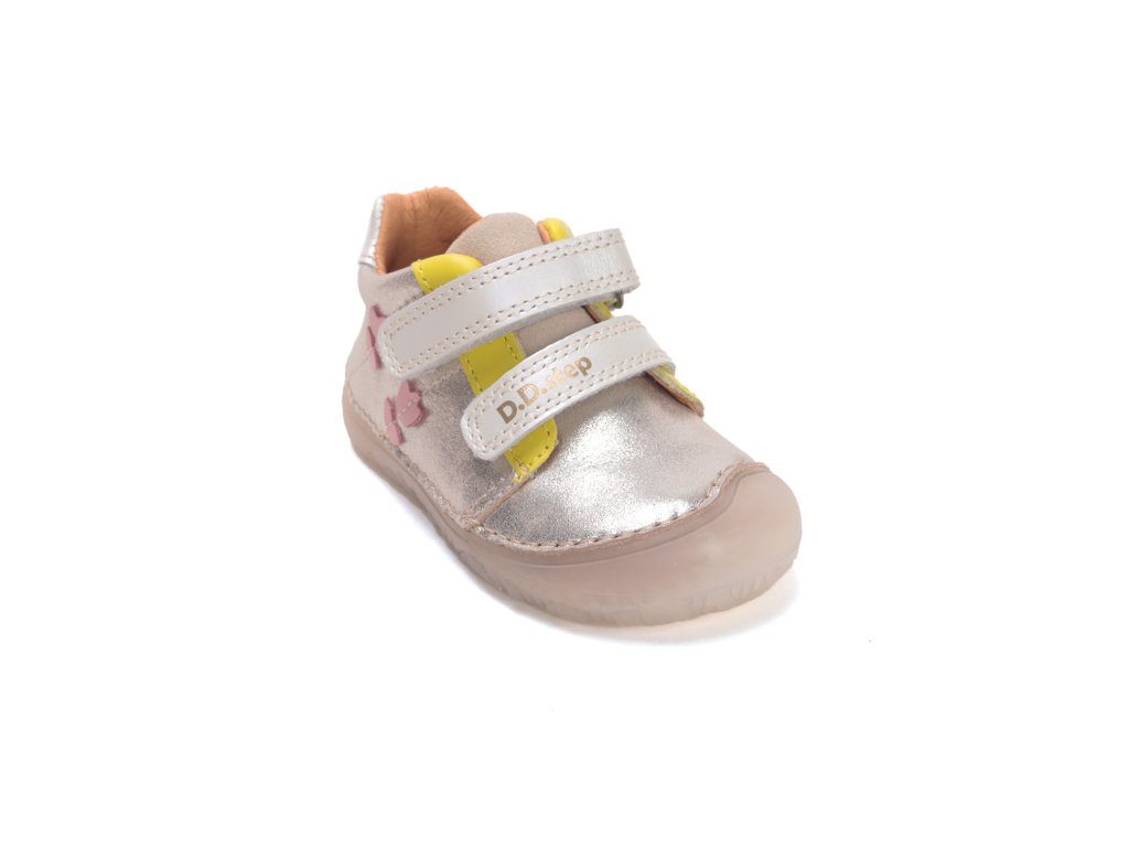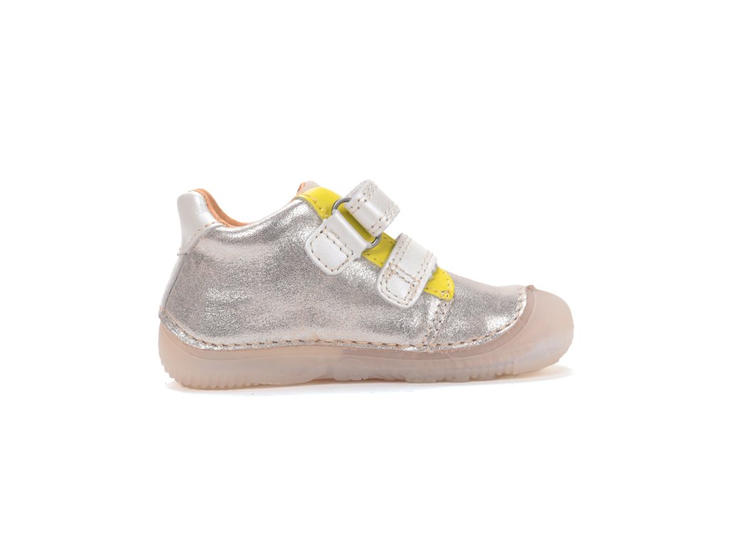 Dievčenské prechodné topánky D.D.Step z modelovej rady 073 v žiarivej zlatej farbe sú ideálnou voľbou pre malé objaviteľky. Tento barefoot model je navrhnutý tak, aby rešpektoval prirodzený tvar detského chodidla a poskytoval dostatok priestoru pre prsty. Topánky sú vyrobené z kvalitnej a mäkkej prírodnej kože, ktorá zabezpečuje priedušnosť a komfort počas celého dňa. Ultra ohybná a tenká podrážka umožňuje dieťaťu vnímať terén a podporuje zdravý vývoj svalov chodidla. Praktické zapínanie na dva suché zipsy zaručuje, že topánka dobre sedí na nohe a uľahčuje každodenné obúvanie. Reflexné prvky zvyšujú bezpečnosť za šera a vyvýšená gumová špička chráni obuv pred mechanickým poškodením pri zakopnutí.