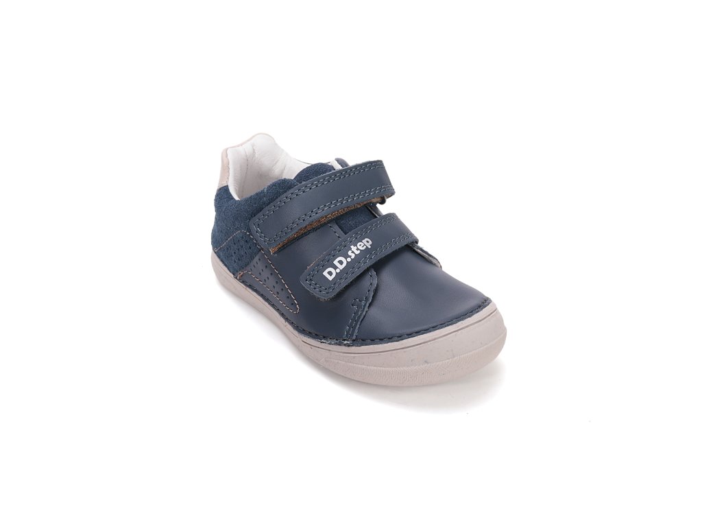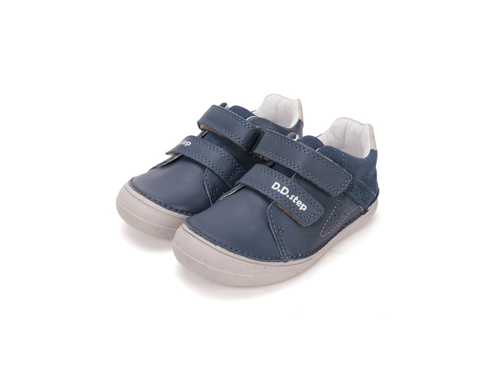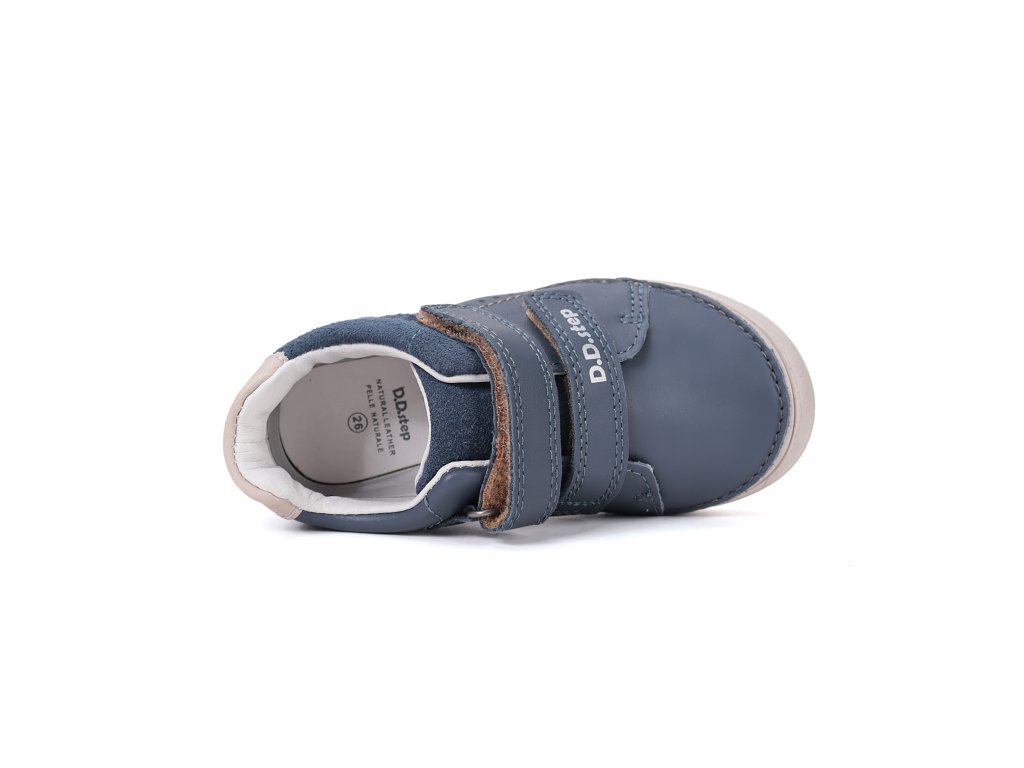 Štýlové a funkčné chlapčenské topánky D.D.Step z modelovej rady 078 sú ideálnou voľbou na prechodné obdobie jari a jesene. Zvršok topánky kombinuje prémiovú hladkú kožu a brúsenú kožu v atraktívnom kráľovskomodrom prevedení. Konštrukcia topánky je navrhnutá s dôrazom na stabilitu, preto obsahuje spevnenú pätu, ktorá pomáha udržať detskú nohu v správnej polohe. Flexibilná gumová podrážka s vyvýšenou špičkou účinne chráni obuv pred mechanickým poškodením a okopaním. Praktické zapínanie na dva suché zipsy zaručuje, že sa topánky rýchlo obúvajú a dajú sa dobre prispôsobiť výške priehlavku.