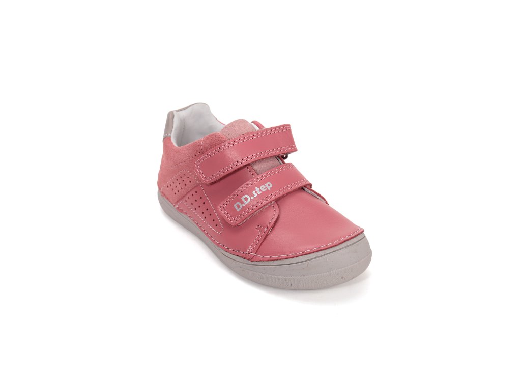D.D.Step modelová rada 078 prináša štýlovú a funkčnú obuv pre malé slečny v nádhernom odtieni jahodovej ružovej. Tieto celokožené prechodné topánky sú ideálnym spoločníkom na jarné a jesenné dni. Kombinácia hladkej a brúsenej kože zaručuje nielen atraktívny vzhľad, ale aj odolnosť a priedušnosť. Topánky sú navrhnuté s ohľadom na komfort detského chodidla, pričom flexibilná podrážka umožňuje prirodzený pohyb. Vyvýšená špička účinne chráni pred okopaním, čo oceníte pri každodenných dobrodružstvách na ihrisku či v meste.