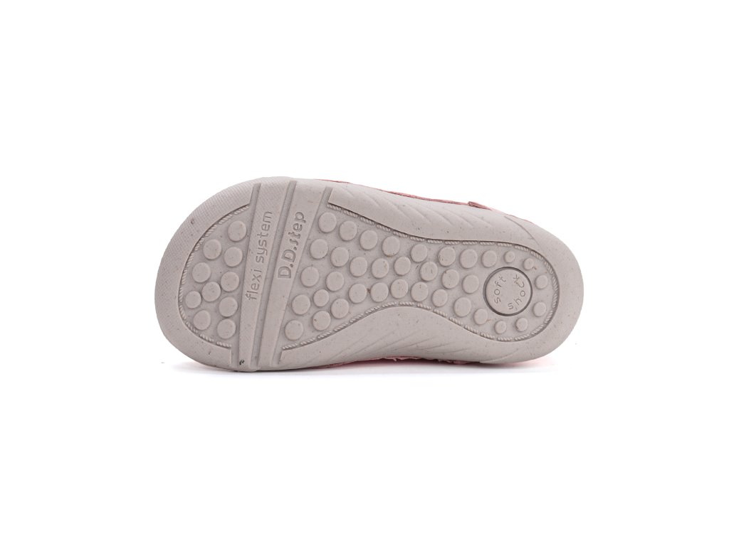 Kvalitné detské celokožené topánky od obľúbeného výrobcu D.D.STEP. Nastaviteľné pomocou suchého zipsu. Výhodou je vyvýšená guma v prednej časti, ktorá zabraňuje okopávaniu topánok. Topánky sedia na normálnu až širokú nôžku, aj s vysokým priehlavkom.