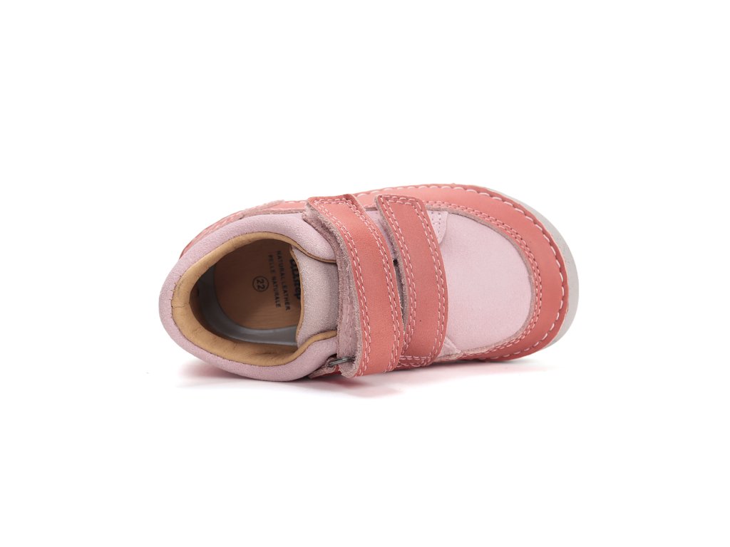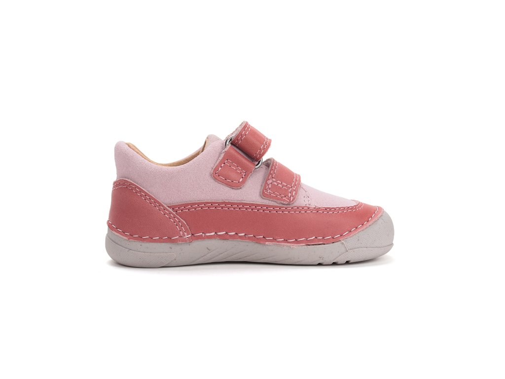 Kvalitné detské celokožené topánky od obľúbeného výrobcu D.D.STEP. Nastaviteľné pomocou suchého zipsu. Výhodou je vyvýšená guma v prednej časti, ktorá zabraňuje okopávaniu topánok. Topánky sedia na normálnu až širokú nôžku, aj s vysokým priehlavkom.