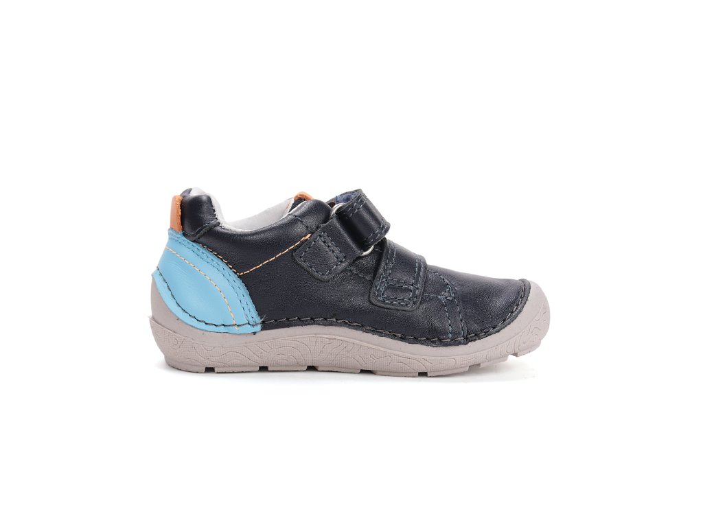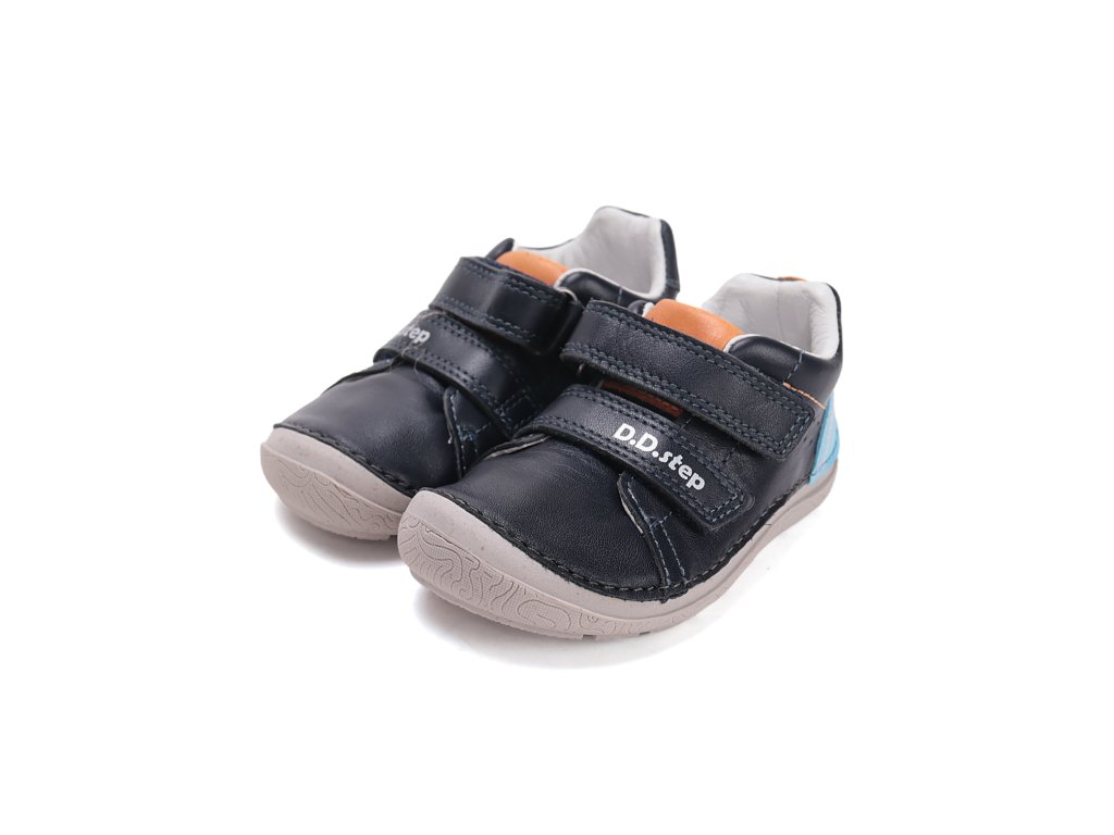 Kvalitné detské celokožené topánky od obľúbeného výrobcu D.D.STEP. Nastaviteľné pomocou suchého zipsu. Výhodou je vyvýšená guma v prednej časti, ktorá zabraňuje okopávaniu topánok. Topánky sedia na normálnu až širokú nôžku, aj s vysokým priehlavkom.