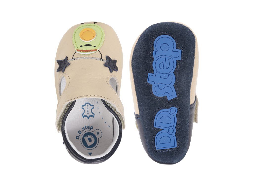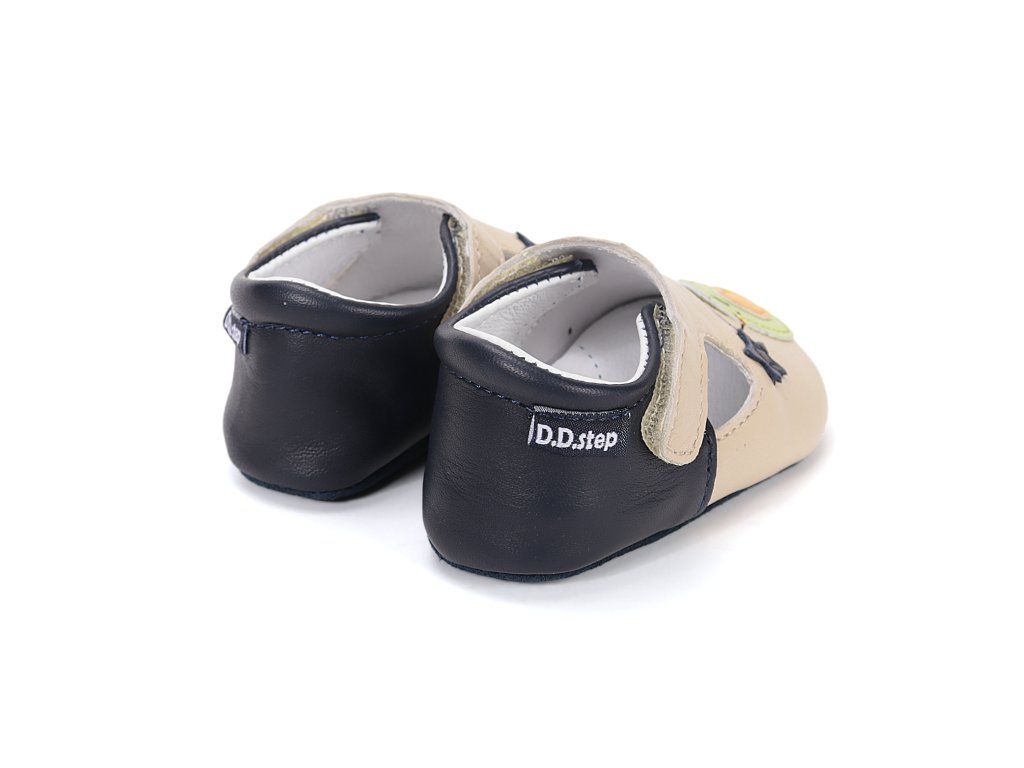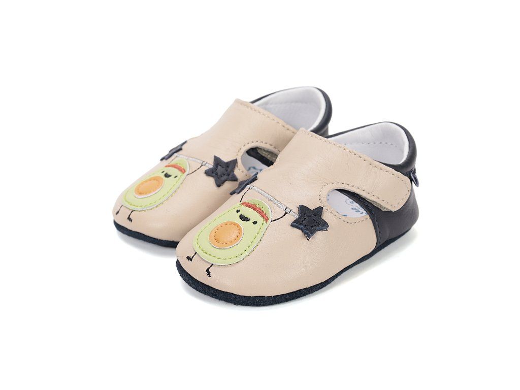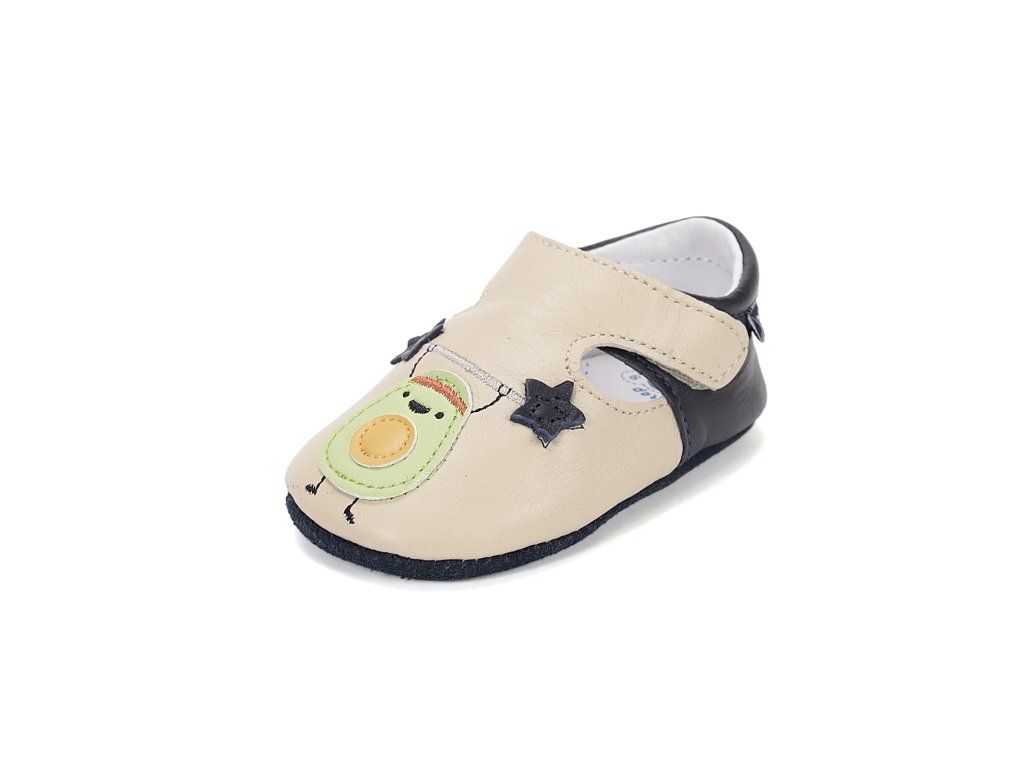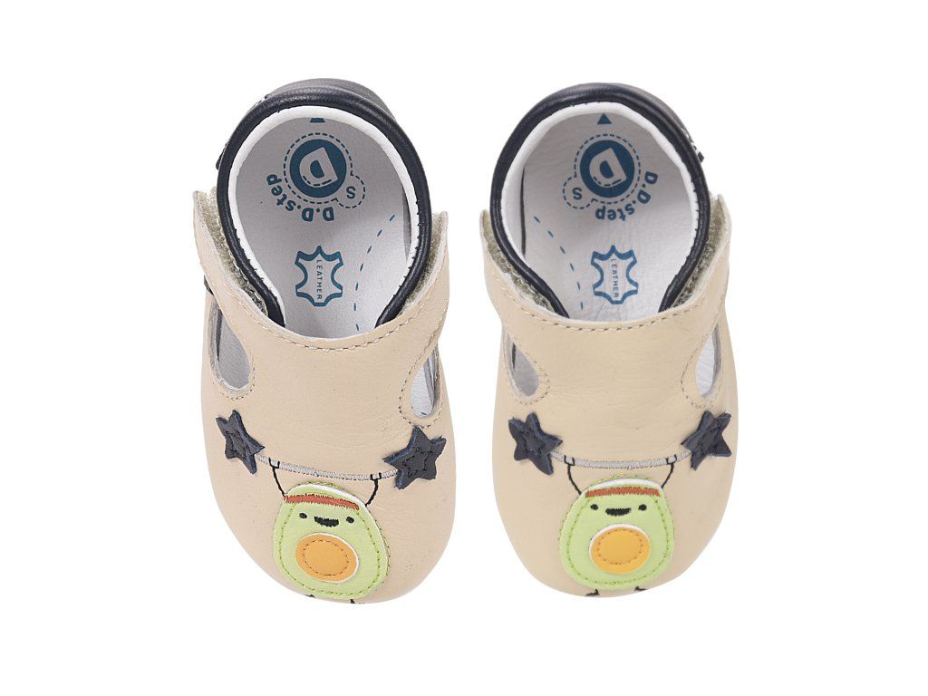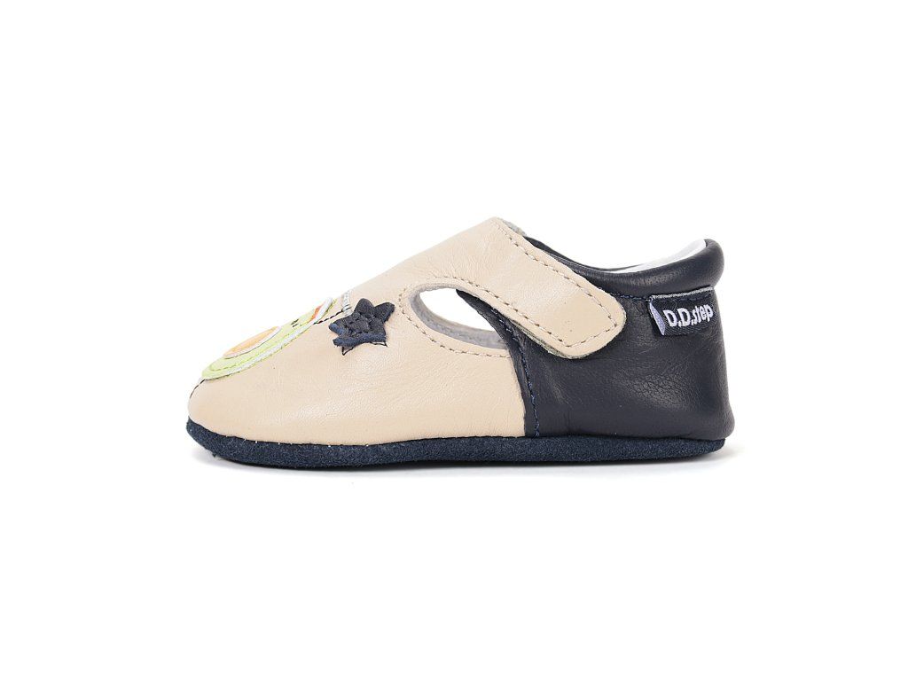 D.D.STEP kožené capačky Cream 61771 predstavujú ideálnu voľbu pre najmenšie deti v období, kedy začínajú objavovať svet okolo seba. Tieto capačky sú navrhnuté s dôrazom na maximálne pohodlie a voľnosť pohybu malých nôžok. Sú vyrobené z kvalitnej a jemnej kože, ktorá zabezpečuje priedušnosť a prirodzenú klímu vo vnútri obuvi. Vďaka svojej mimoriadnej ohybnosti nekladú odpor pri prvých pokusoch o postavenie sa a chôdzu. Roztomilý dizajn s motívom avokáda a tmavomodrých hviezd osloví nielen deti, ale aj rodičov hľadajúcich štýlovú a funkčnú obuv do interiéru. Praktický suchý zips umožňuje rýchle obutie a stabilné uchytenie na nohe, čo oceníte pri každodennom nosení.