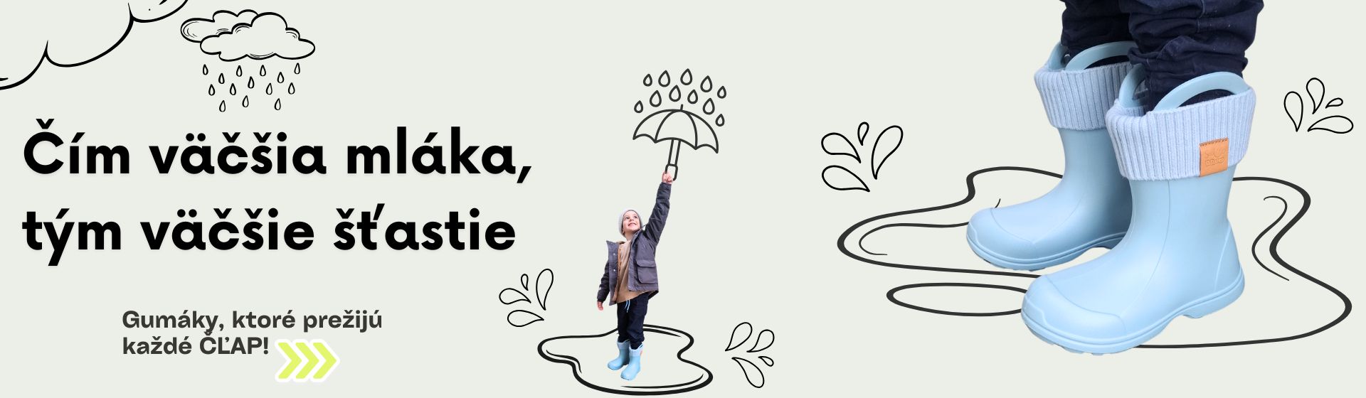 Detské gumáky sú neodmysliteľnou súčasťou výbavy každého dieťaťa – najmä v prechodných obdobiach, daždivých dňoch či pri hrách v blate a kalužiach. Kvalitné gumáky ochránia detské nôžky pred vlhkom, chladom a znečistením a zároveň umožnia deťom bez obáv objavovať svet vonku.