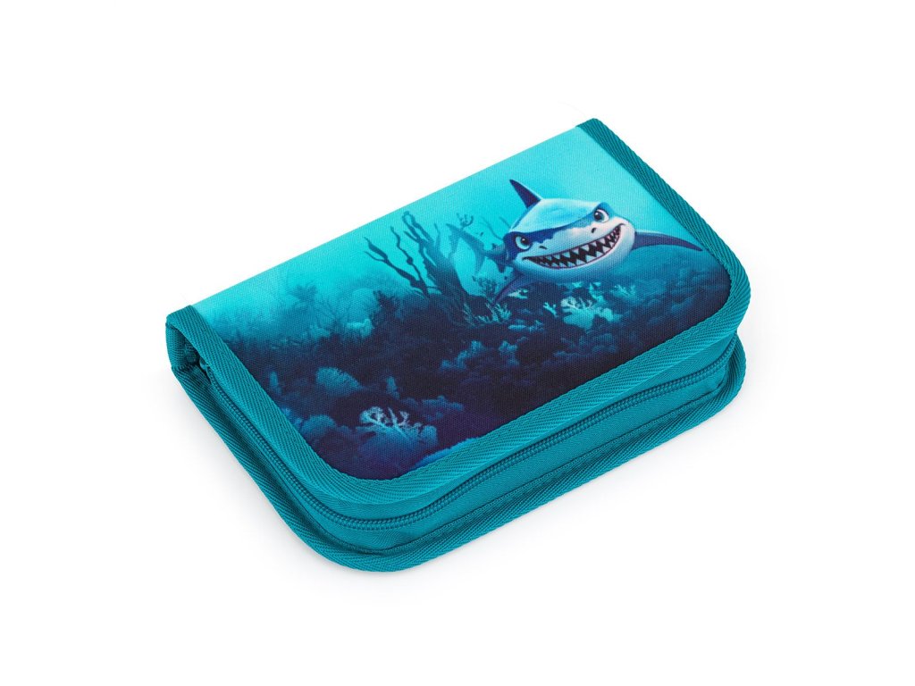 Jednopatrové školní pouzdro se dvěma klopami. Díky gumovým úchytům se do nich vejde celkem dvacetjedna pastelek, tužek a fixek. Tři širší úchyty poslouží na pravítko, kružítko či nůžky. Dva větší na gumu a ořezávátko.