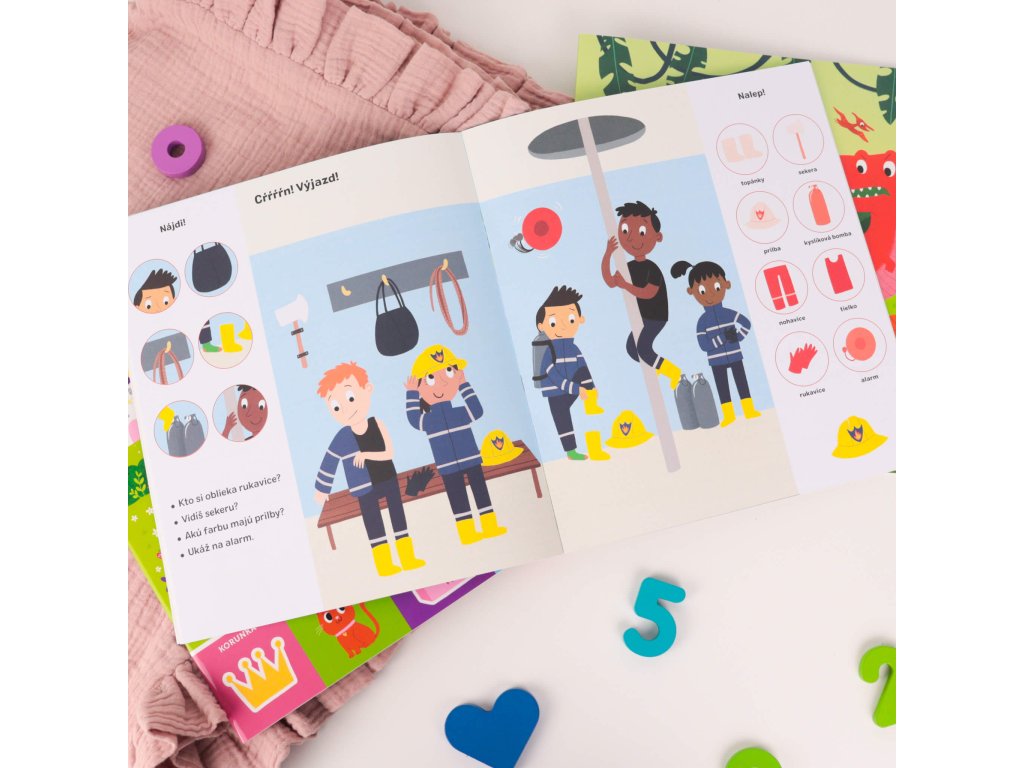 Spoznaj hasičov a ich prácu. Čaká ťa vyše 101 obrázkov - niektoré na hľadanie, iné na dolepenie.