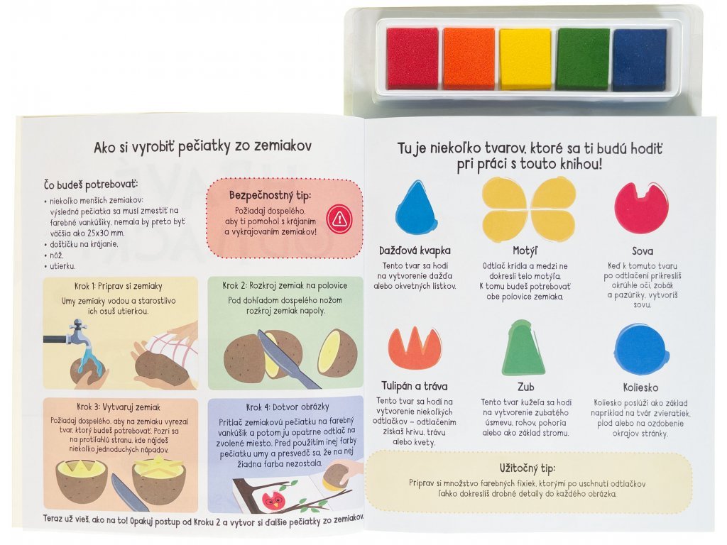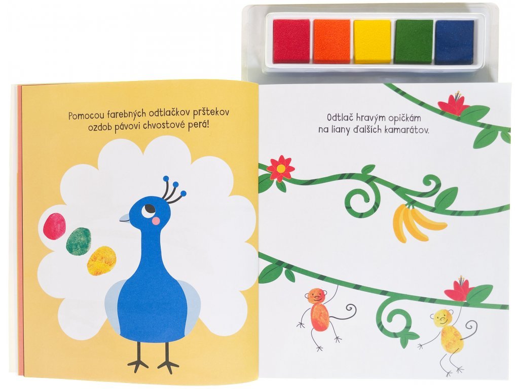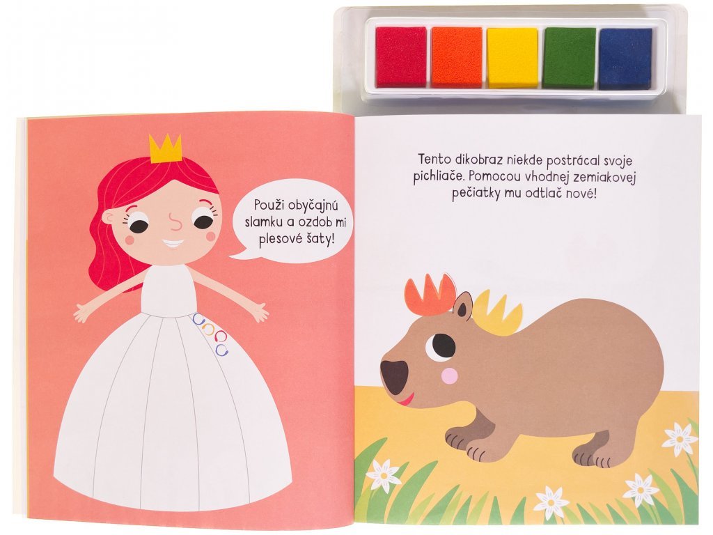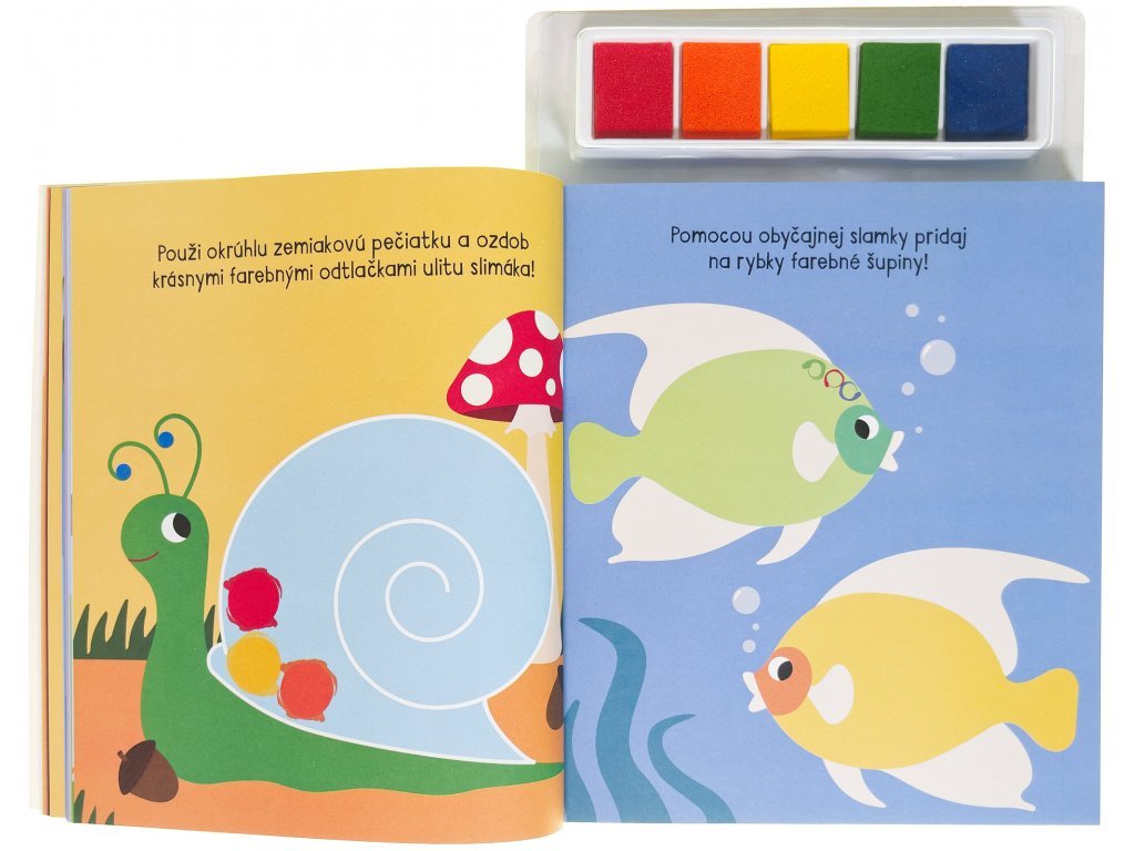 Kniha ponúka množstvo nápadov na tvorbu pomocou odtlačkov prstov a zemiakových pečiatok. Vytvor si odtlačky zvieracích priateľov, príšery alebo morskej panny.