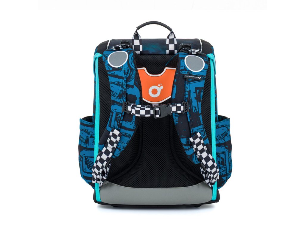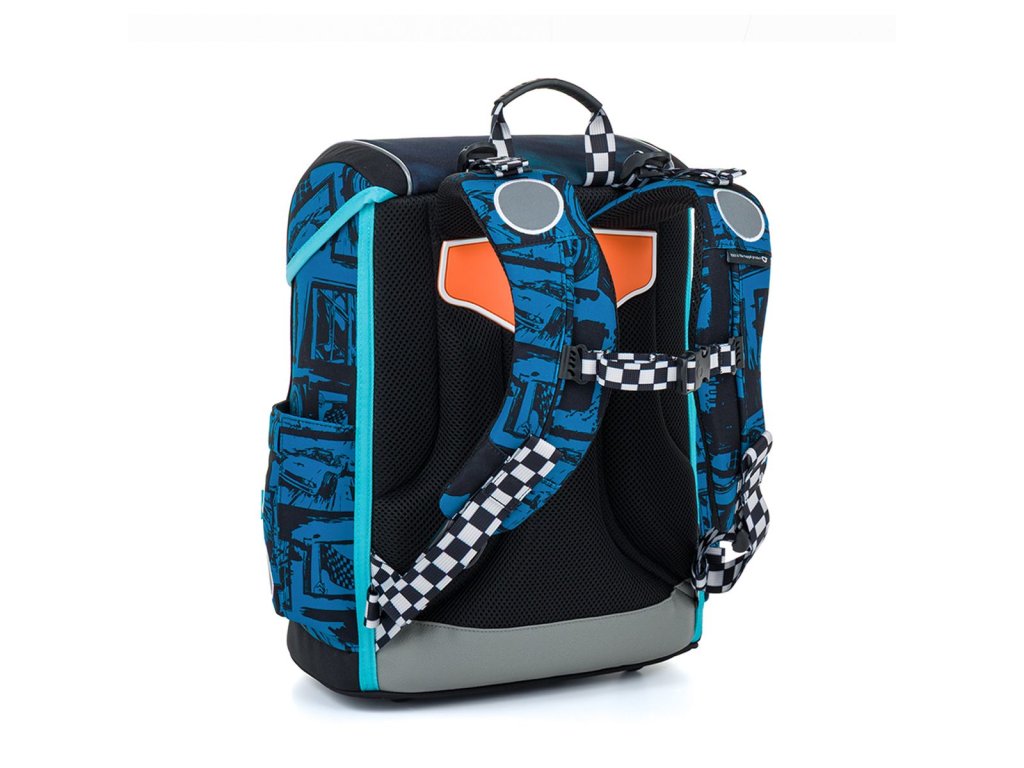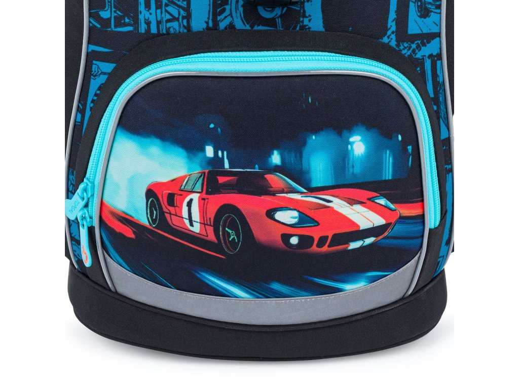 O bezpečnosť dieťaťa sa starajú výrazné reflexné prvky umiestnené zo všetkých strán aktovky. Moderný chlapčenský dizajn v odtieňoch modrej a čiernej dopĺňa výrazné závodné auto, ktoré evokuje rýchlosť, energiu a dobrodružstvo nočných ulíc. AIRA 26012 je tak skvelou voľbou pre všetkých malých pretekárov, ktorí milujú autá.