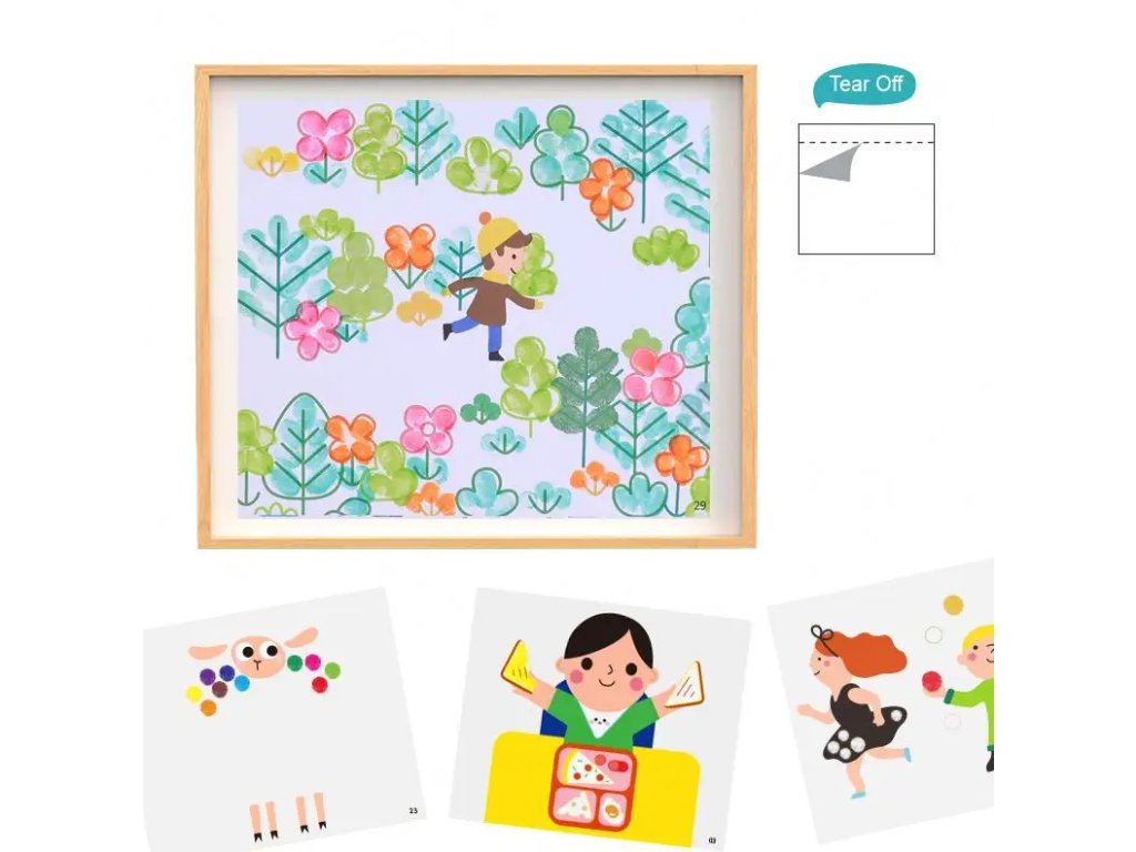 Deti tak môžu využiť predlohy aj v začiatkoch bodkovania – dot paintingu alebo klasického maľovania štetcom. Cvičia si pritom jemnú motoriku, grafomotoriku a zoznamujú sa s kúzelným svetom tvorenia. Nakoniec im zostanú krásne obrázky, ktoré sa dajú z bloku jednoducho vytrhnúť.