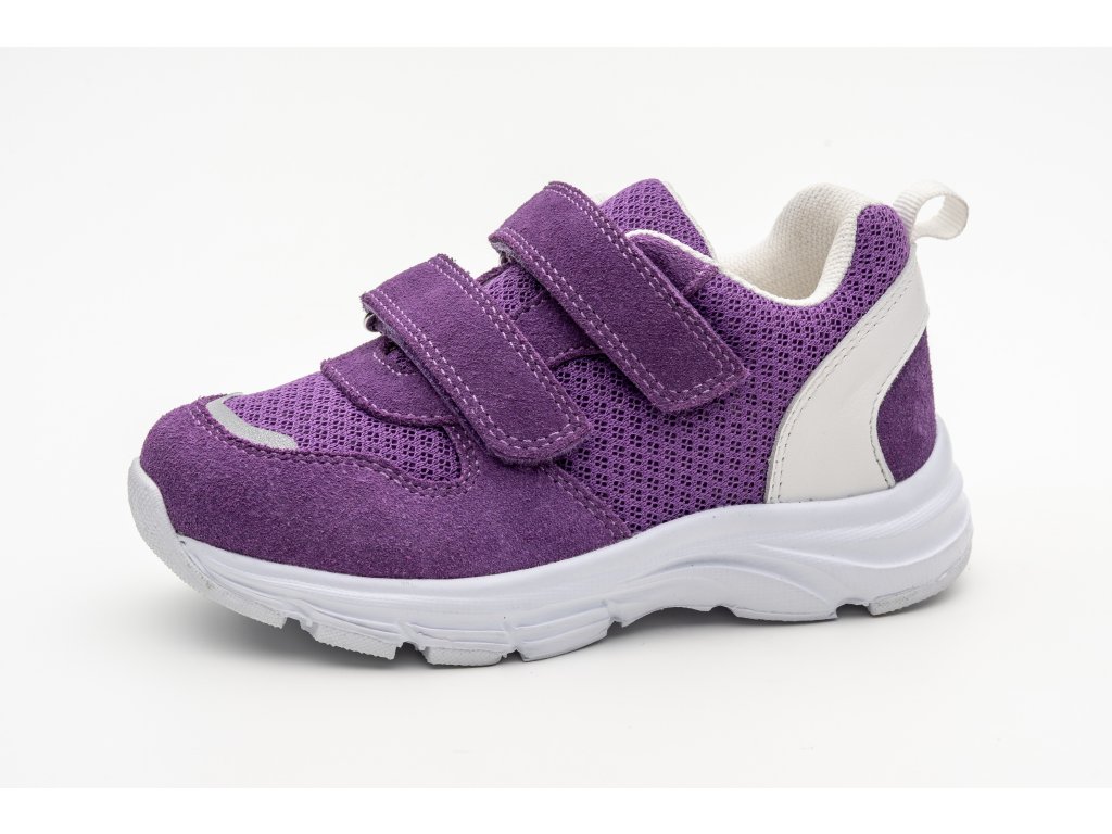 Športové tenisky PROTETIKA ANDY Purple sú ideálnou voľbou pre aktívne dievčatá, ktoré hľadajú pohodlie a štýl pri každodenných aktivitách. Tieto tenisky kombinujú priedušný sieťovaný materiál s prvkami z brúsenej kože, čím zabezpečujú optimálnu cirkuláciu vzduchu a potrebnú odolnosť. Praktické zapínanie na dva suché zipsy umožňuje rýchle a jednoduché obúvanie, ktoré zvládnu deti aj samostatne. Vďaka vyvýšenej bielej podrážke tlmia nárazy pri behu či skákaní, zatiaľ čo pevná konštrukcia päty poskytuje stabilitu pre členok. Moderný fialový dizajn s bielymi detailmi sa skvele hodí k športovému aj voľnočasovému outfitu do školy, na ihrisko alebo na prechádzky mestom.