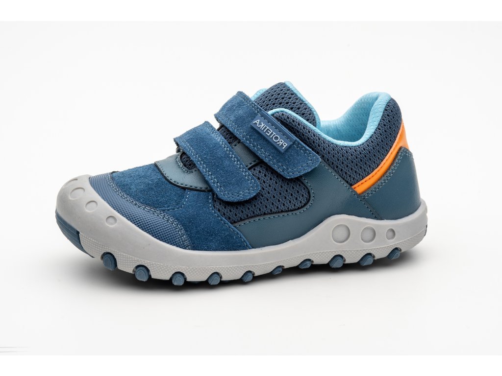 PROTETIKA ESPERO Blue sú ideálnou voľbou pre aktívne deti počas prechodného jesenného a jarného obdobia. Tieto kompromisné topánky spájajú funkčnosť so športovým dizajnom, pričom rešpektujú anatomický tvar detského chodidla. Zvršok je vyrobený z odolnej brúsenej kože (semiš) v kombinácii s priedušnou sieťovinou, čo zabezpečuje dobrú ventiláciu. Integrovaná membrána PRO-TEX chráni detskú nohu pred vlhkosťou zvonku a zároveň umožňuje odvádzanie pár smerom von. Topánky disponujú vyvýšenou gumenou podrážkou v prednej časti, ktorá účinne chráni obuv pred okopaním. Zapínanie na dva suché zipsy umožňuje rýchle obutie a presné dotiahnutie okolo členka.