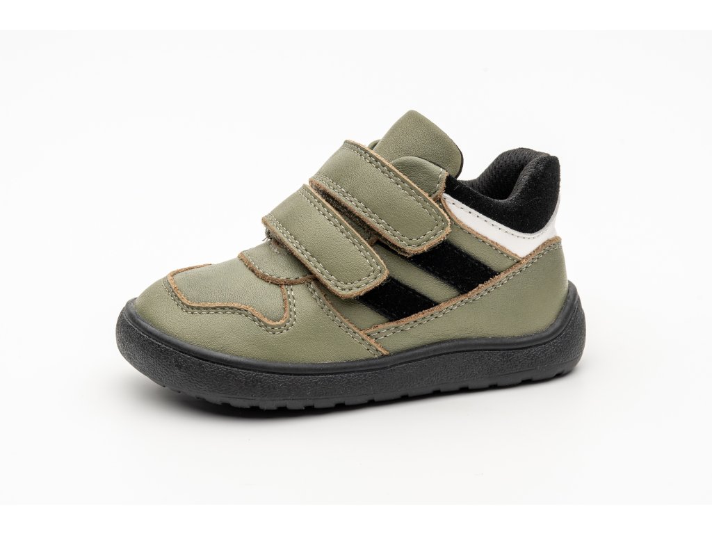 Bočný pohľad na celoročnú barefoot obuv Protetika Veston Khaki s praktickým zapínaním na suchý zips.