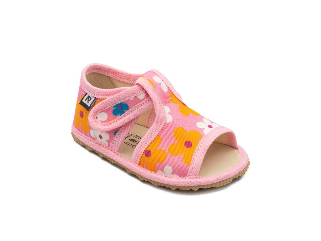 Krásne a pohodlné RAK Flexi otvorené papučky sú ideálne pre deti, ktoré potrebujú ľahkú, mäkkú a maximálne ohybnú prezúvkovú obuv. Vďaka flexibilnej stielke, tenkej protišmykovej podrážke a barefoot prvkom podporujú prirodzený pohyb chodidla a zdravý vývoj nôh. Vyrobené sú zo 100 % bavlny a prírodnej ECO kože, takže sú nielen komfortné, ale aj priedušné. Podrážka je vhodná pre normálnu až širšiu nôžku.