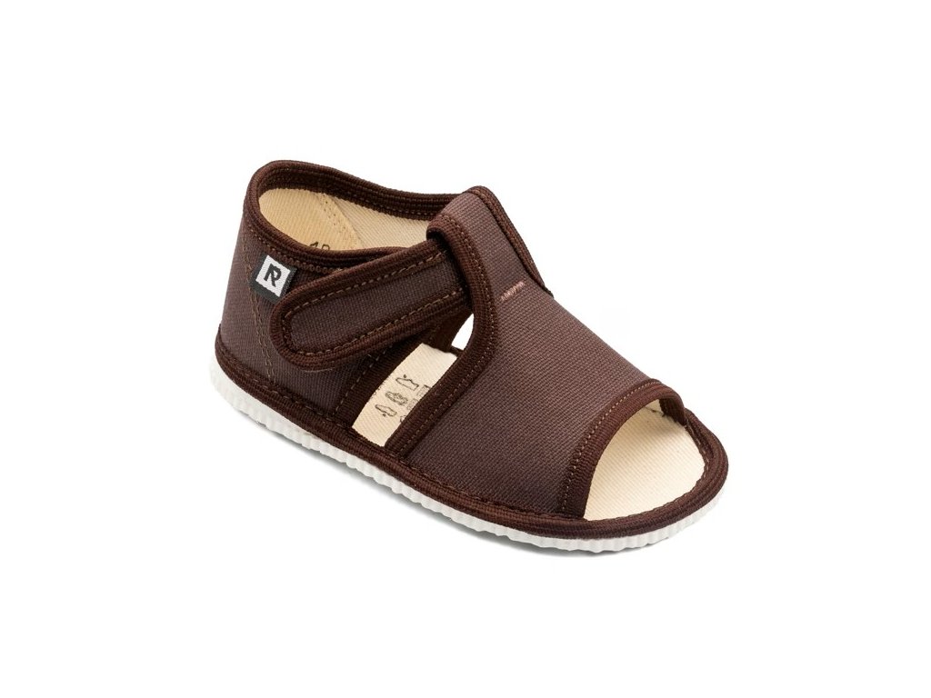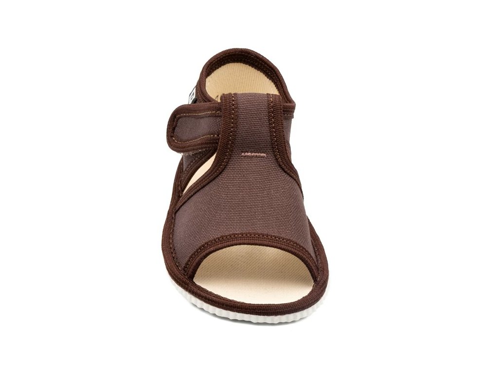 Ľahké a priedušné detské papuče sandálkového strihu sú ideálne ako prezúvky do škôlky, školy aj na domáce nosenie. Otvorená špička poskytuje prstom dostatok priestoru a zapínanie na suchý zips umožňuje rýchle a jednoduché obúvanie. Mäkký bavlnený textil je príjemný na nosenie a papučky sa dobre prispôsobia detskej nožičke. Vnútorná stielka s penovou výplňou v strednej časti chodidla zvyšuje pohodlie pri chôdzi. Podrážka je vhodná pre normálnu až mierne širšiu nôžku.