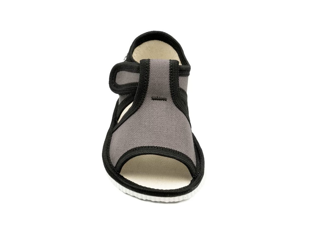 Ľahké a priedušné detské papuče sandálkového strihu sú ideálne ako prezúvky do škôlky, školy aj na domáce nosenie. Otvorená špička poskytuje prstom dostatok priestoru a zapínanie na suchý zips umožňuje rýchle a jednoduché obúvanie. Mäkký bavlnený textil je príjemný na nosenie a papučky sa dobre prispôsobia detskej nožičke. Vnútorná stielka s penovou výplňou v strednej časti chodidla zvyšuje pohodlie pri chôdzi. Podrážka je vhodná pre normálnu až mierne širšiu nôžku.