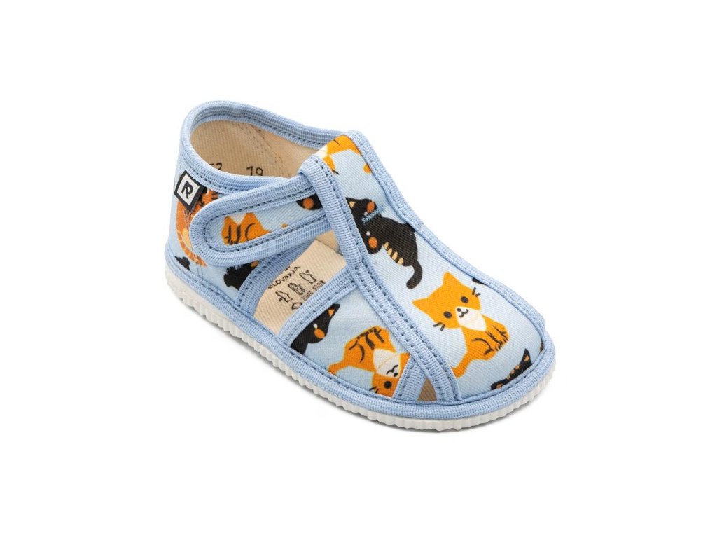 Papučky RAK s uzavretou špičkou sú klasická prezúvková obuv od slovenského výrobcu, navrhnutá tak, aby bola pohodlná, priedušná a dostatočne priestranná pre rastúcu detskú nôžku. Zvršok je vyrobený zo 100 % bavlneného textilu, ktorý je mäkký, vzdušný a príjemný na nosenie aj počas dlhého dňa v škôlke či škole.