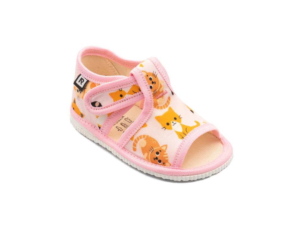 RAK Papuče Mačky ružové otvorená špička úzky strih