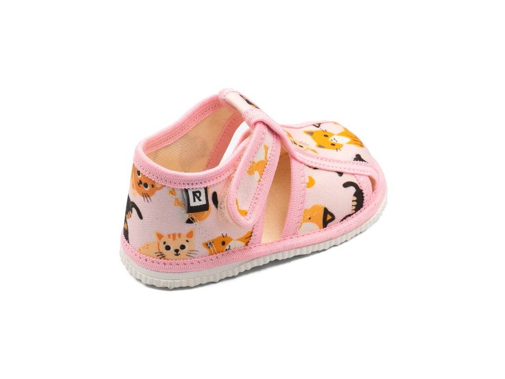 Krásne a pohodlné RAK papuče s uzavretou špičkou sú ideálne na každodenné nosenie v interiéri. Vďaka 100 % bavlne, mäkkej penovej stielke a jednoduchému zapínaniu na suchý zips poskytujú deťom komfort, oporu a bezpečné nosenie počas celého dňa. Tvar špičky poskytuje prstom dostatok priestoru na prirodzený pohyb. Podrážka je vhodná pre normálnu nôžku.