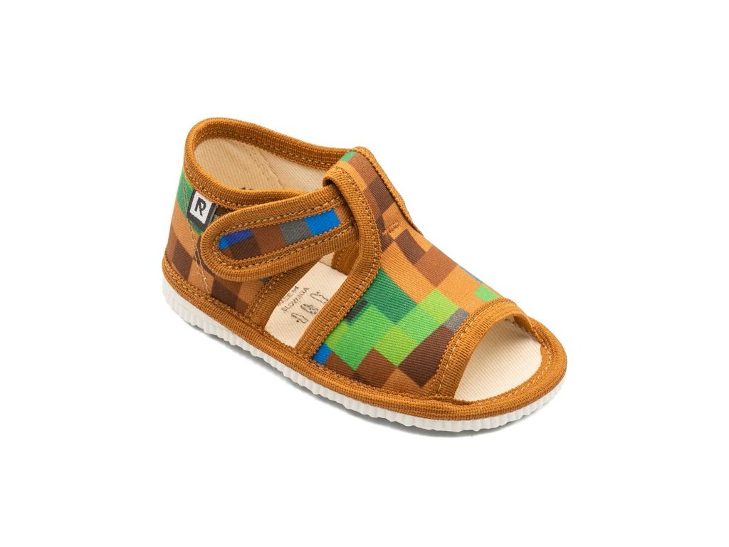 RAK Papuče Pixel hnedý otvorená špička úzky strih