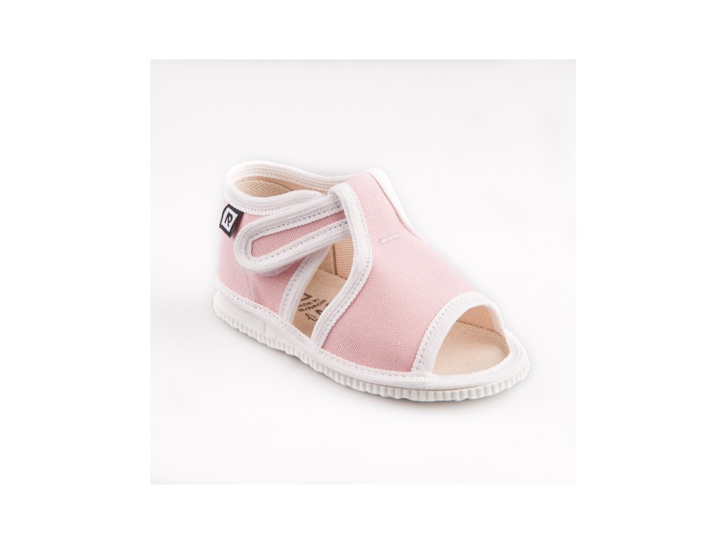 Ľahké a priedušné detské papuče sandálkového strihu sú ideálne ako prezúvky do škôlky, školy aj na domáce nosenie. Otvorená špička poskytuje prstom dostatok priestoru a zapínanie na suchý zips umožňuje rýchle a jednoduché obúvanie. Mäkký bavlnený textil je príjemný na nosenie a papučky sa dobre prispôsobia detskej nožičke. Vnútorná stielka s penovou výplňou v strednej časti chodidla zvyšuje pohodlie pri chôdzi. Podrážka je vhodná pre normálnu až mierne širšiu nôžku.