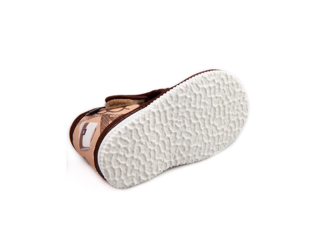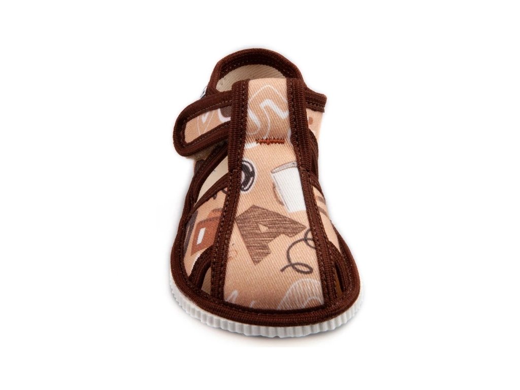 Tvar špičky rešpektuje dominantný detský palček, čo zabezpečuje dostatok miesta pre prsty a prirodzené rozloženie chodidla pri pohybe. Papučky sú určené na interiérové nosenie ako prezúvková obuv a sú vhodné do škôlky, školy aj na domáce použitie.