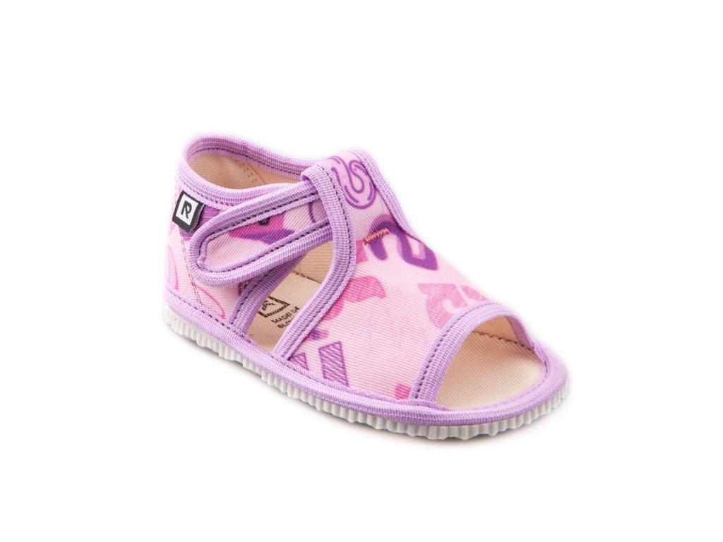 Ľahké a priedušné detské papuče sandálkového strihu sú ideálne ako prezúvky do škôlky, školy aj na domáce nosenie. Otvorená špička poskytuje prstom dostatok priestoru a zapínanie na suchý zips umožňuje rýchle a jednoduché obúvanie. Mäkký bavlnený textil je príjemný na nosenie a papučky sa dobre prispôsobia detskej nožičke. Vnútorná stielka s penovou výplňou v strednej časti chodidla zvyšuje pohodlie pri chôdzi. Podrážka je vhodná pre normálnu až mierne širšiu nôžku.