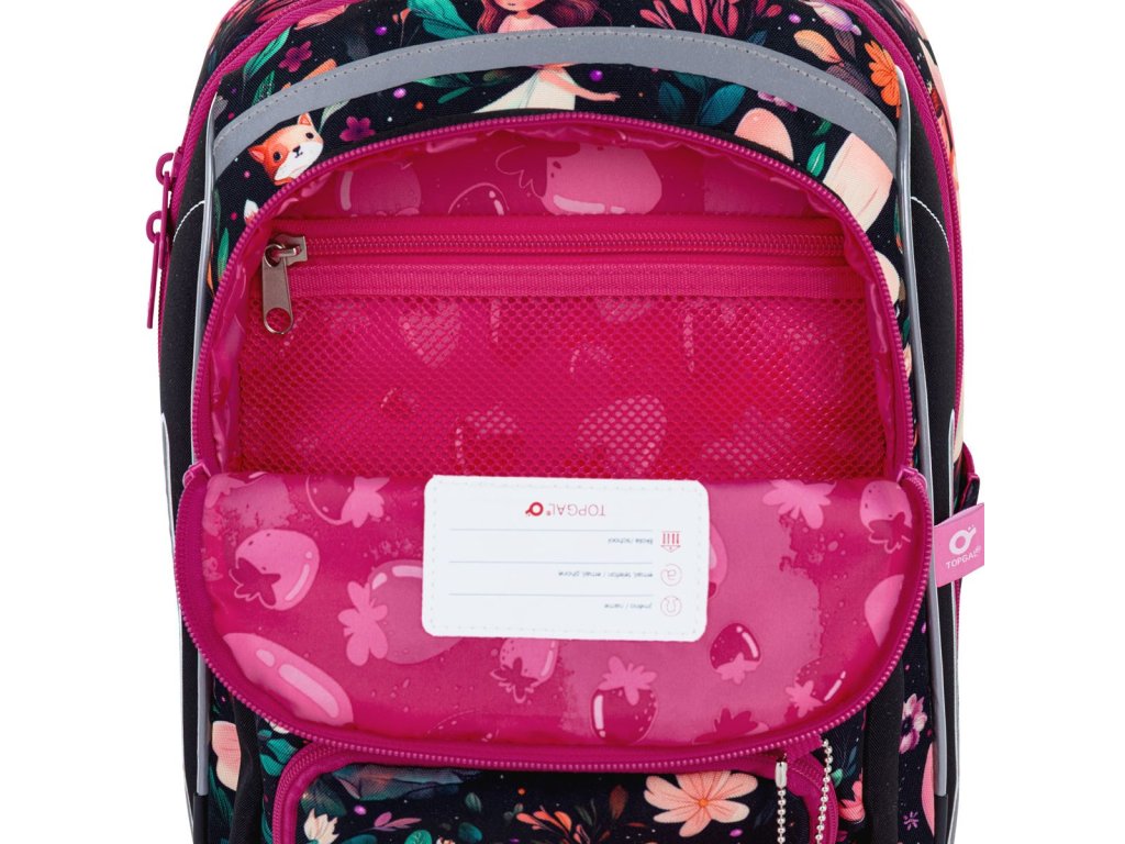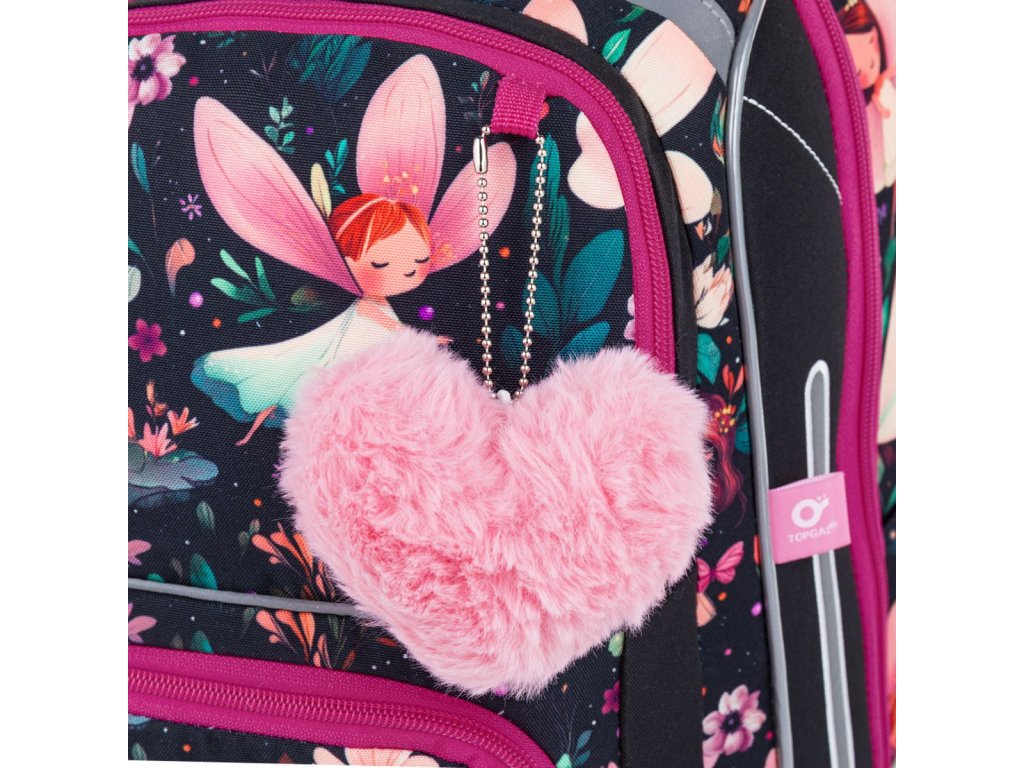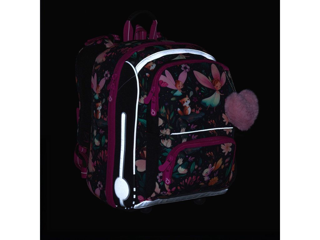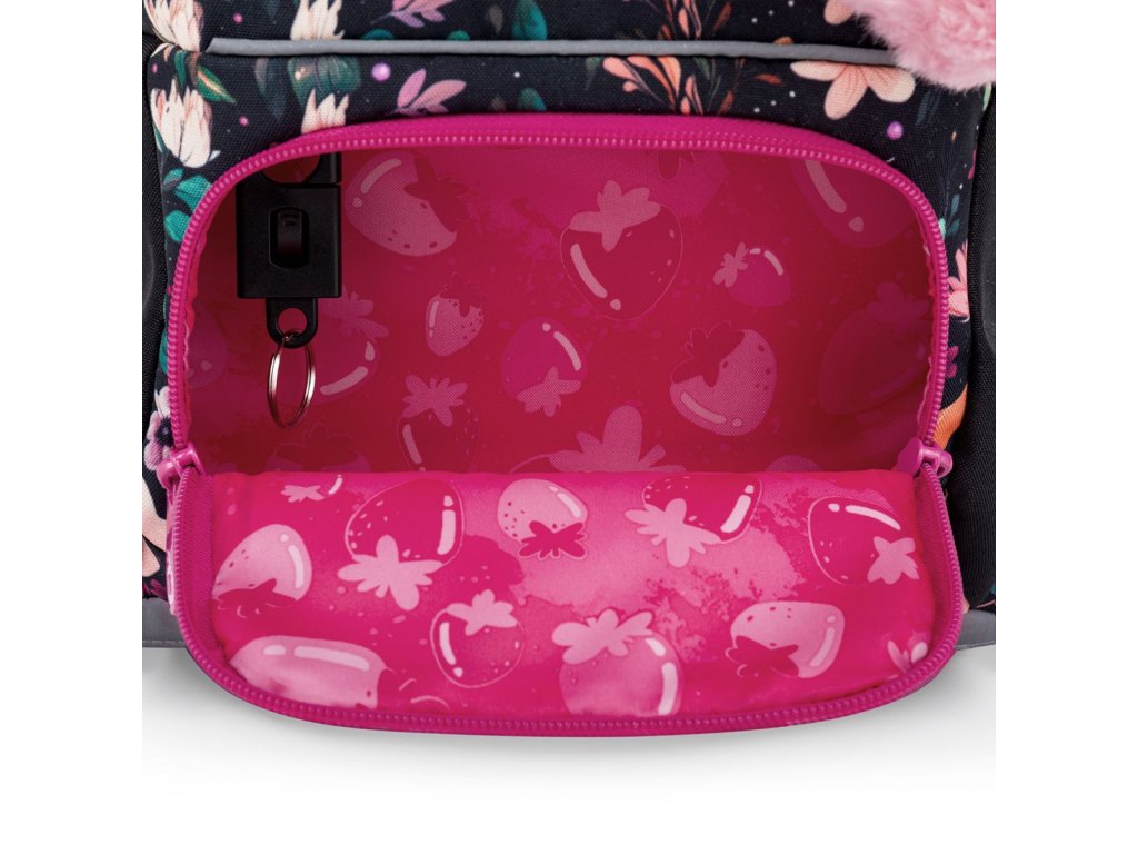 Vnútorný priestor je prakticky členený, aby sa školské potreby dali jednoducho usporiadať. Nechýbajú ani reflexné prvky pre lepšiu viditeľnosť a bezpečnosť na ceste do školy. Rozkošný chlpatý prívesok dodáva batohu hravý detail, ktorý očarí každú malú parádnicu.