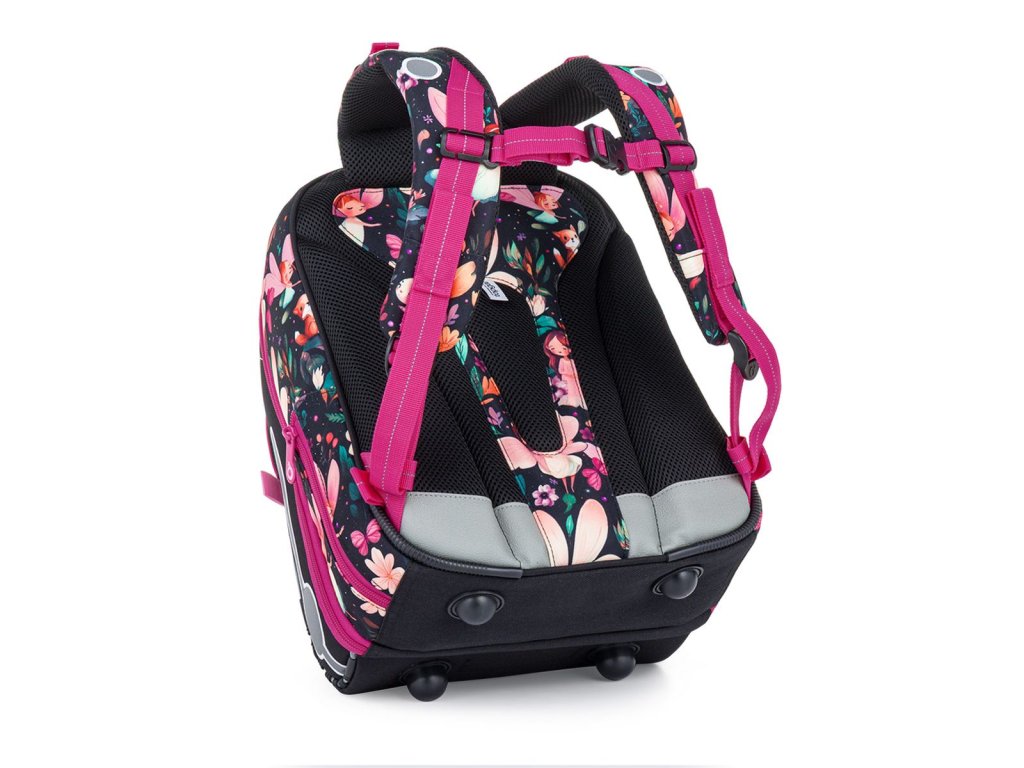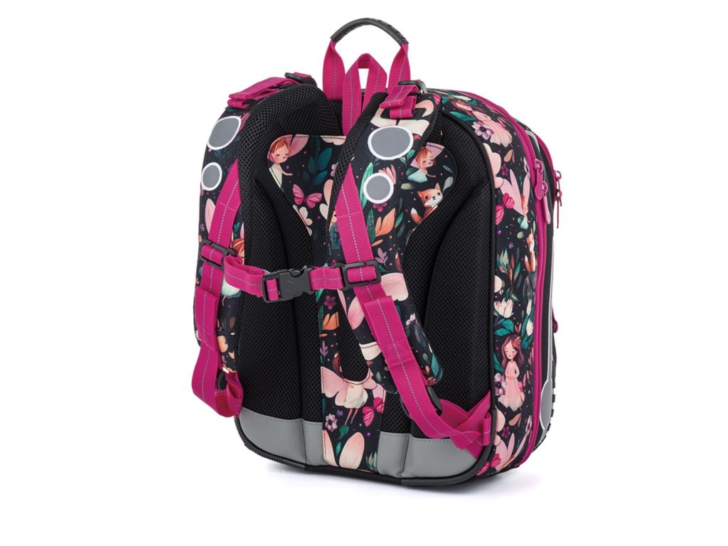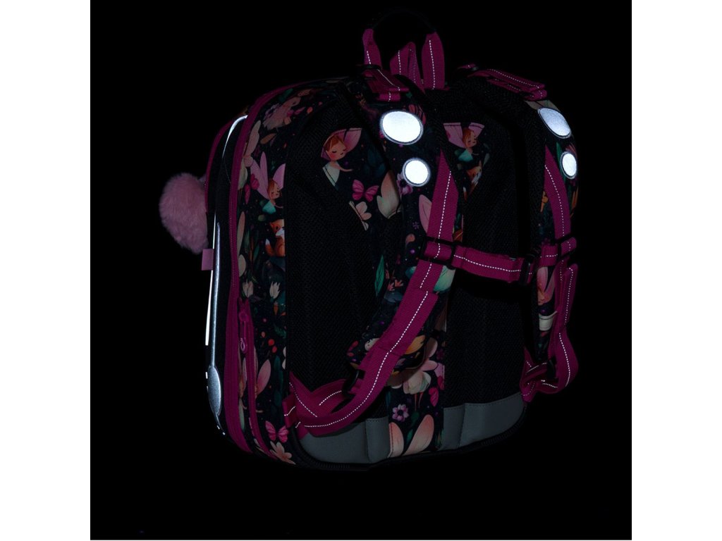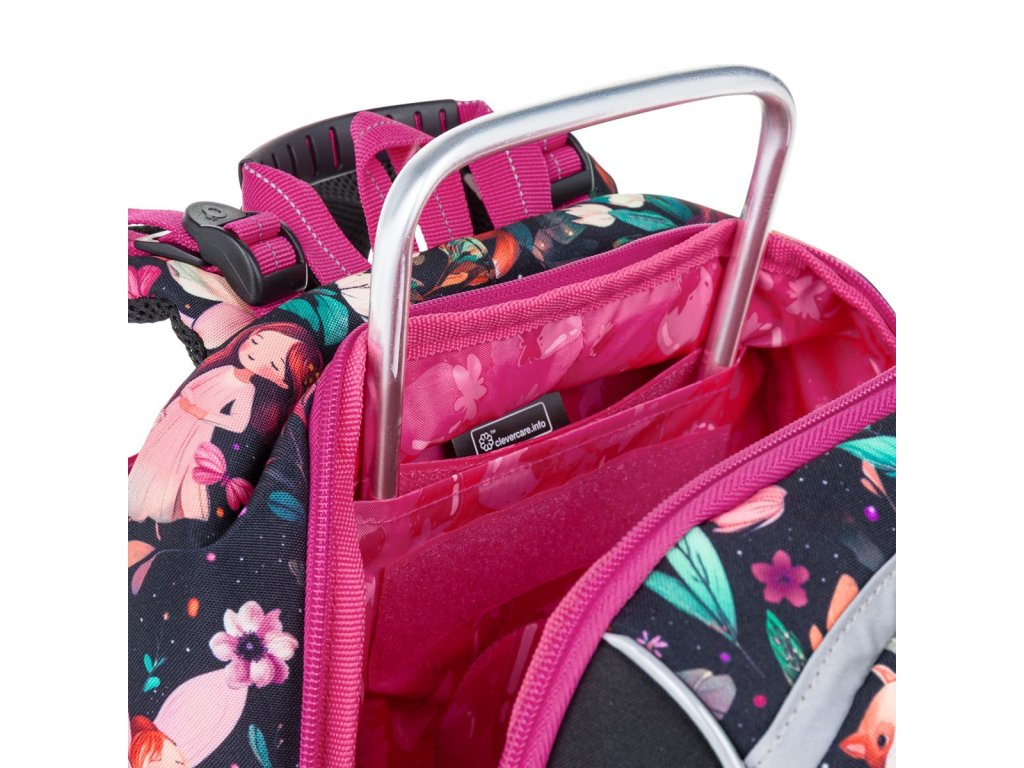 Školská aktovka Čarovný les bola navrhnutá s ohľadom na potreby malých školáčok – je ľahká, prehľadná a krásne sedí na chrbte. Romantický motív víl, kvetov a lesných zvieratiek v kombinácii s ružovými detailmi z nej robí batoh, ktorý si Vaša dcérka zamiluje na prvý pohľad.