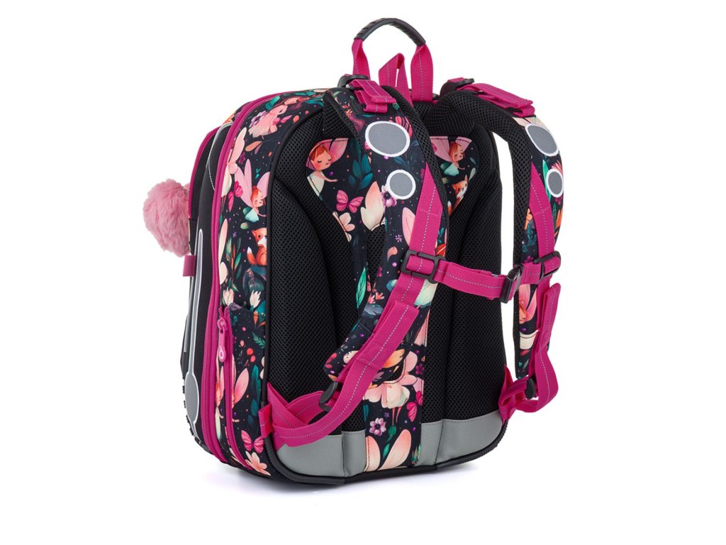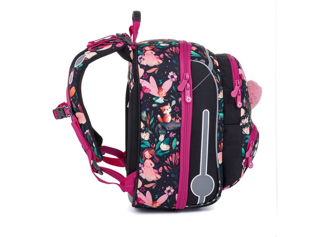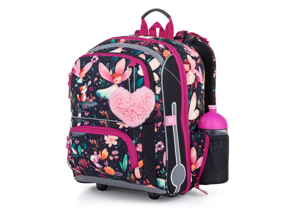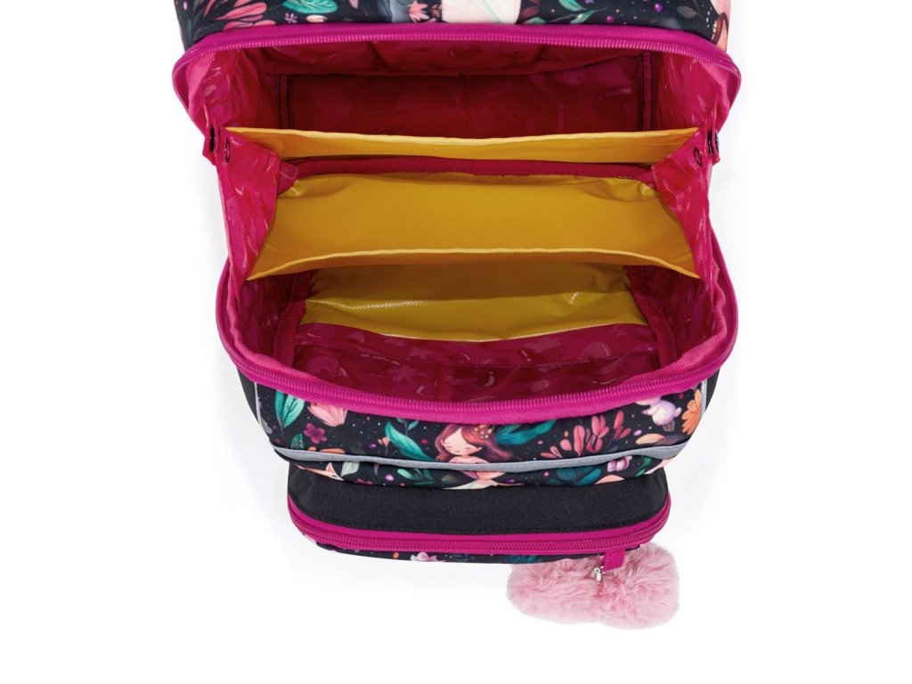 Školská aktovka Čarovný les bola navrhnutá s ohľadom na potreby malých školáčok – je ľahká, prehľadná a krásne sedí na chrbte. Romantický motív víl, kvetov a lesných zvieratiek v kombinácii s ružovými detailmi z nej robí batoh, ktorý si Vaša dcérka zamiluje na prvý pohľad.