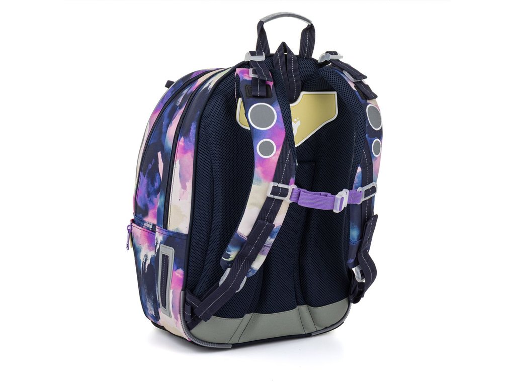 Školská taška KIMI 26011 je moderný a ľahký model navrhnutý pre školáčky od 2. do 5. triedy. Jemný akvarelový motív v pastelových farbách pôsobí elegantne a nadčasovo, vďaka čomu bude batoh Vašu dcéru sprevádzať s radosťou niekoľko školských rokov.