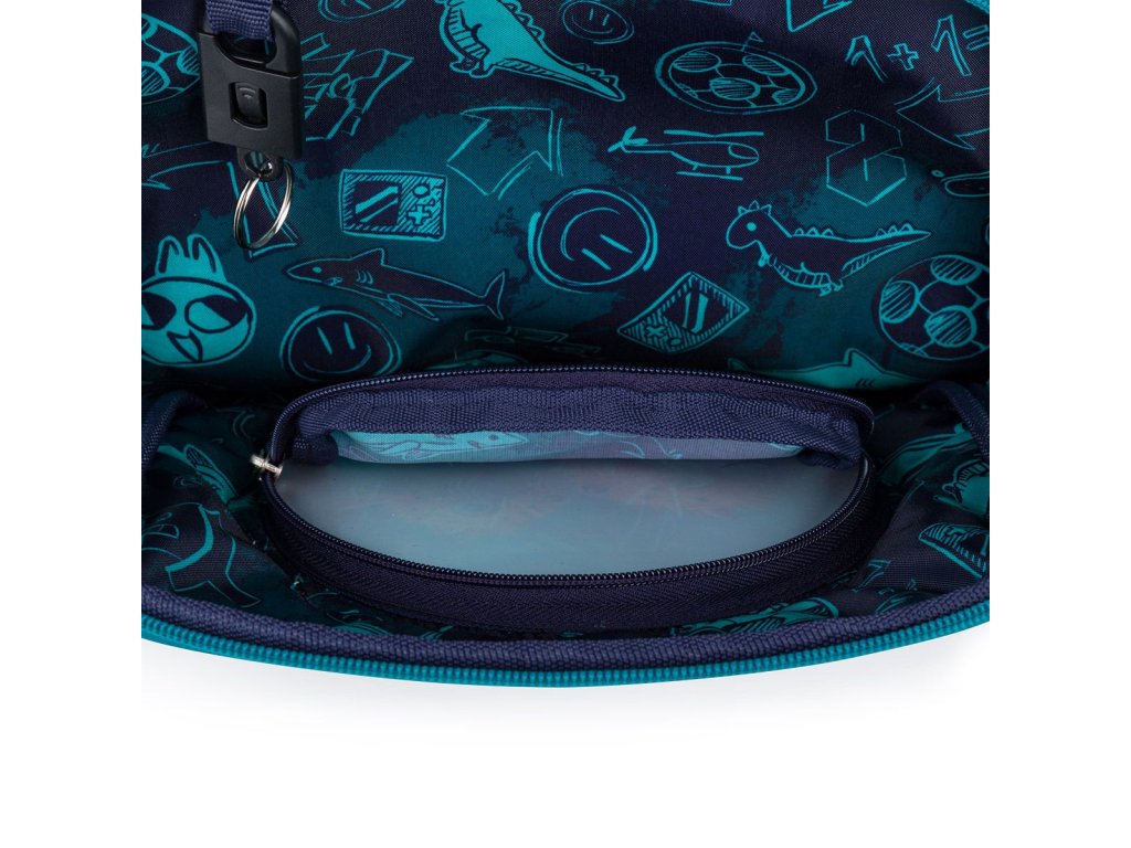 Ľahučký dvojkomorový model ENDY 26014 váži len o čosi viac než kilogram a skvele sadne menším školákom od prvej do tretej triedy základnej školy. Motív podmorského sveta s veselou rybkou si deti obľúbia na prvý pohľad – a vďaka vymeniteľným obrázkom môžete deťom každý deň vytvoriť batoh s novým vzhľadom.
