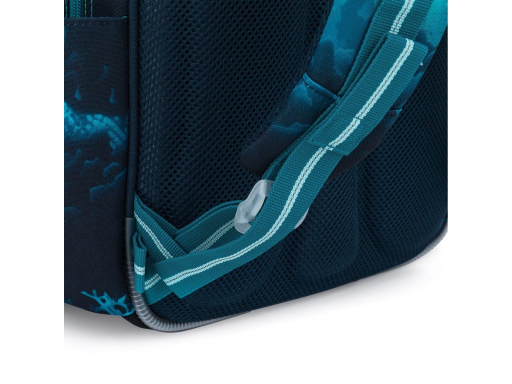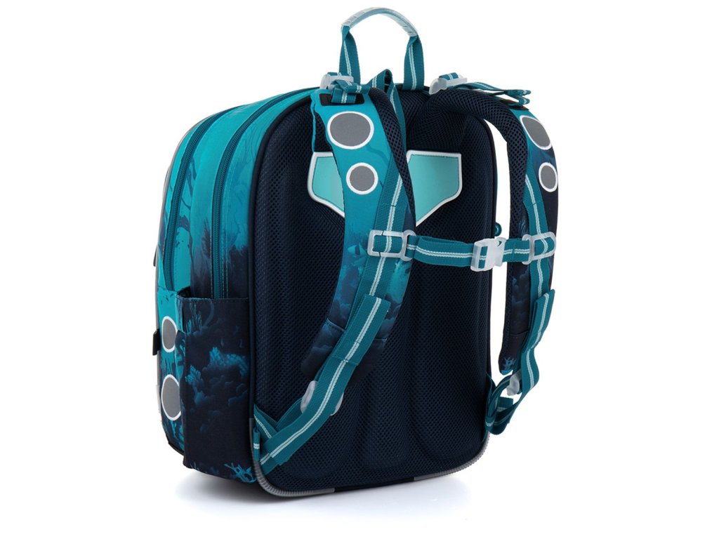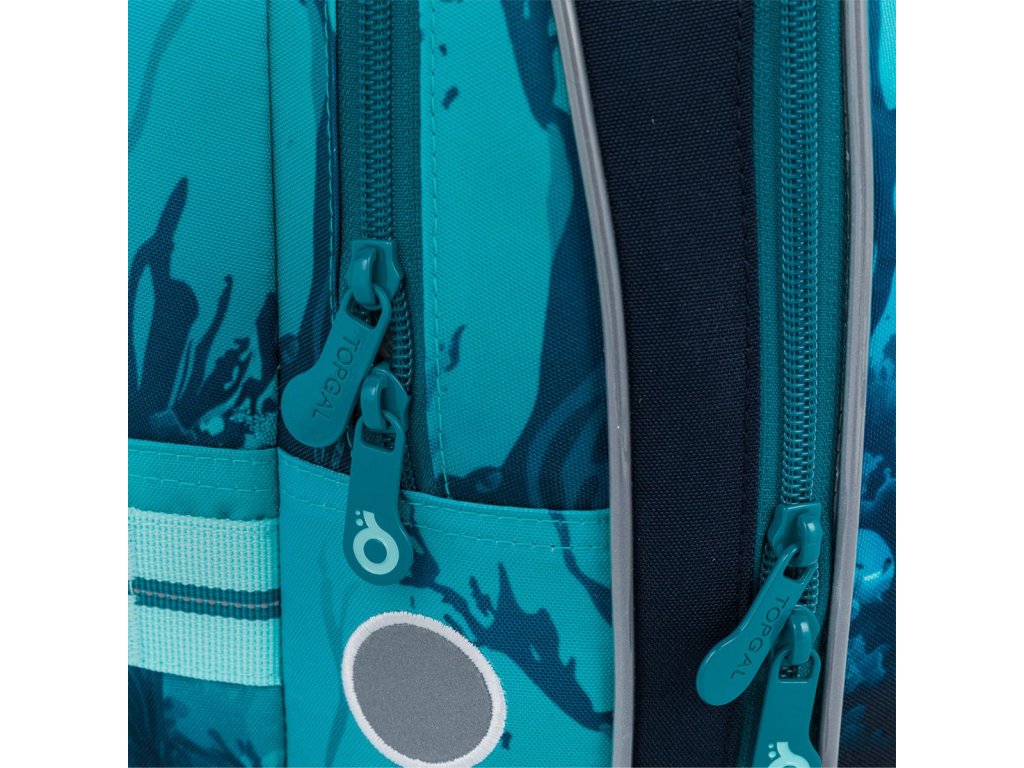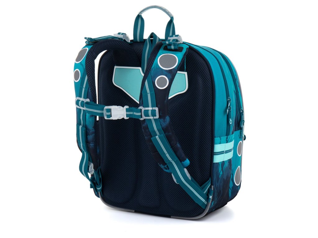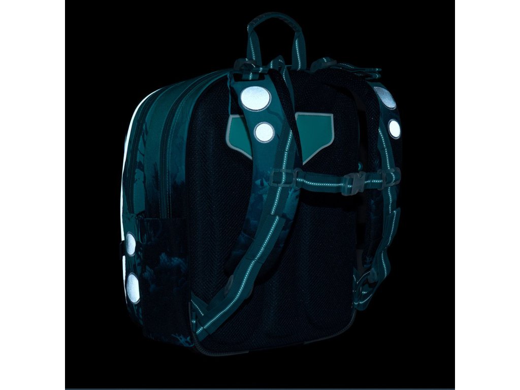 Spodná časť batohu je chránená pevnými plastovými nožičkami, vďaka ktorým batoh stabilne stojí a odoláva každodennému používaniu. Samozrejmosťou sú reflexné prvky na prednej časti, bokoch aj ramenných popruhoch, ktoré zvyšujú viditeľnosť a bezpečnosť vášho dieťaťa na ceste do školy aj zo školy.