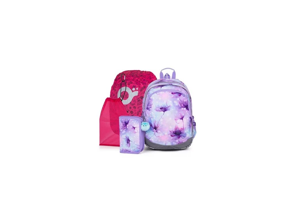 Zvýhodnený set školskej tašky s peračníkom, vrecúškom na prezúvky a nepremokavou pláštenkou.