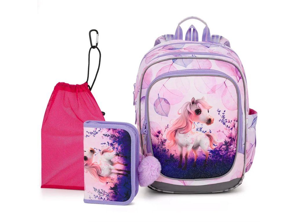 Zvýhodnený set školskej tašky s peračníkom a vrecúškom na prezúvky.